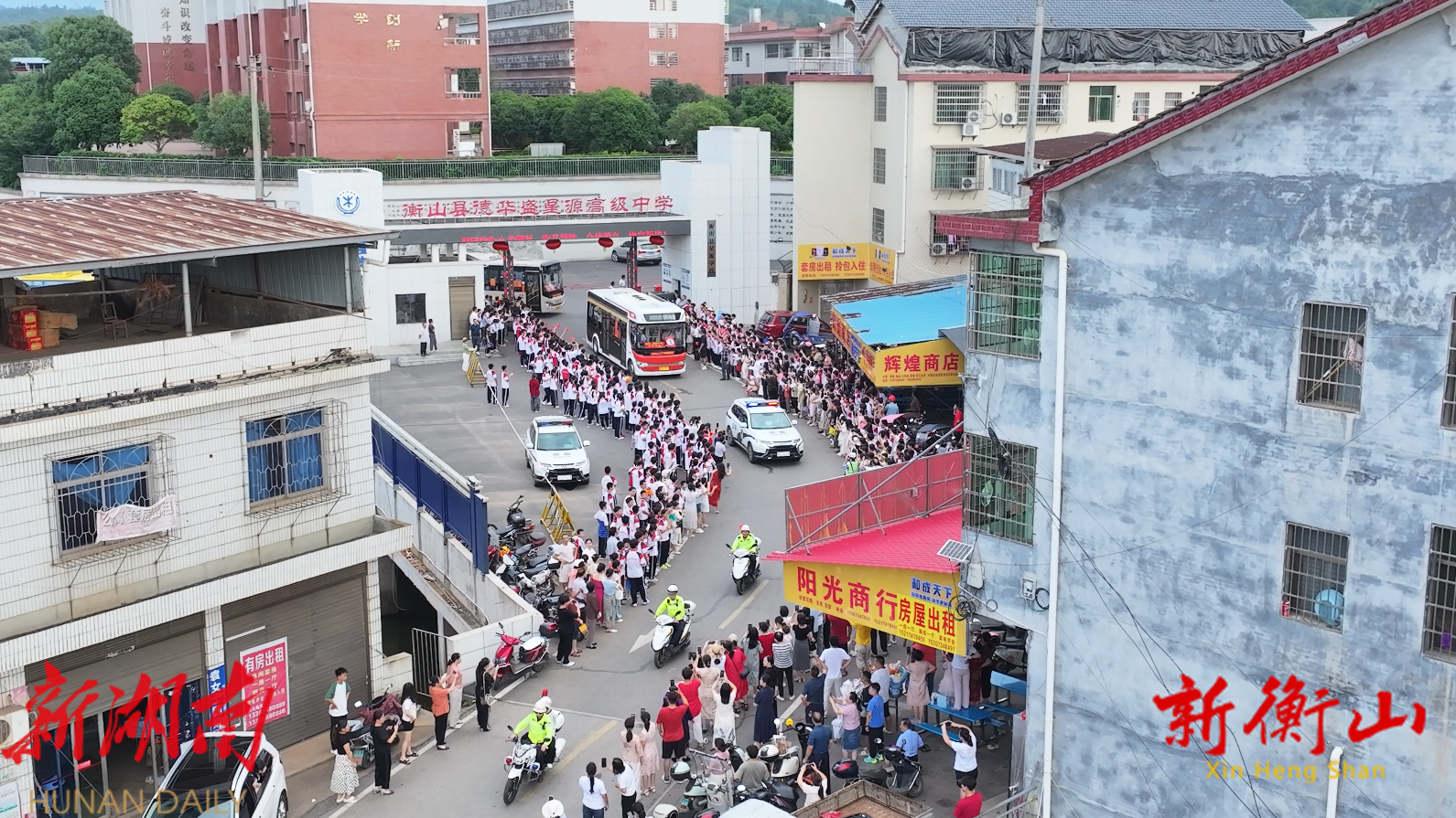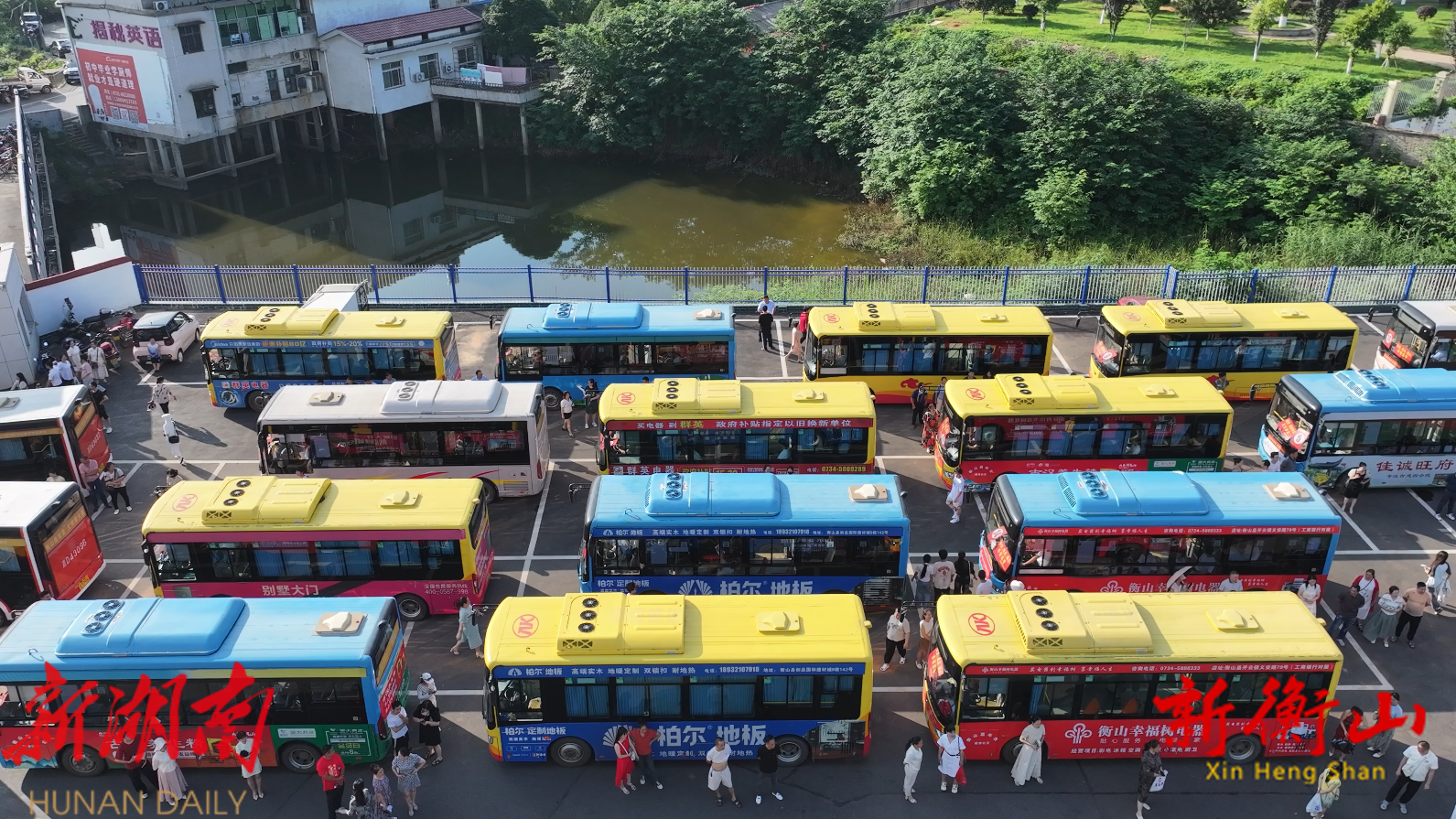 当天上午,记者在衡山县德华盛星源高级中学看到,校园内,10余辆送考“爱心大巴”整装待发。