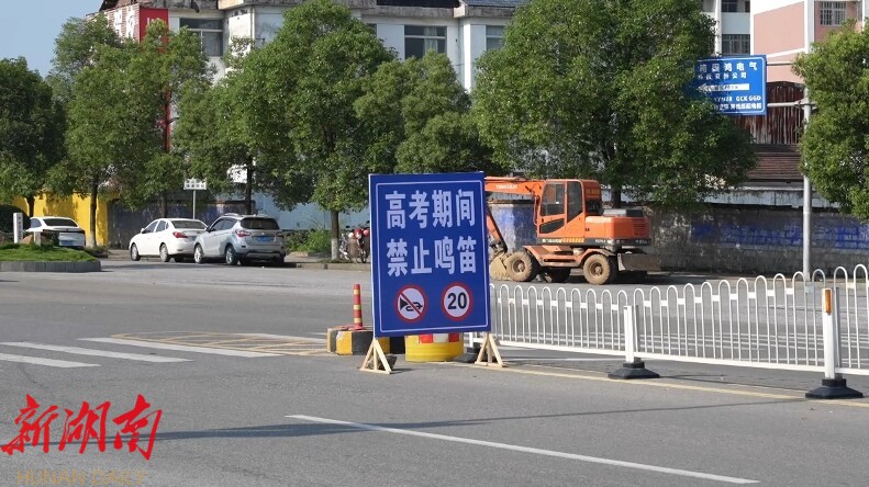 在考点周边,交警设置了交通管制区域和禁鸣标识,对过往车辆进行严格疏导,不断提示司机降速慢行、禁止鸣笛,全力避免交通拥堵,为考生打造安静的考试环境。