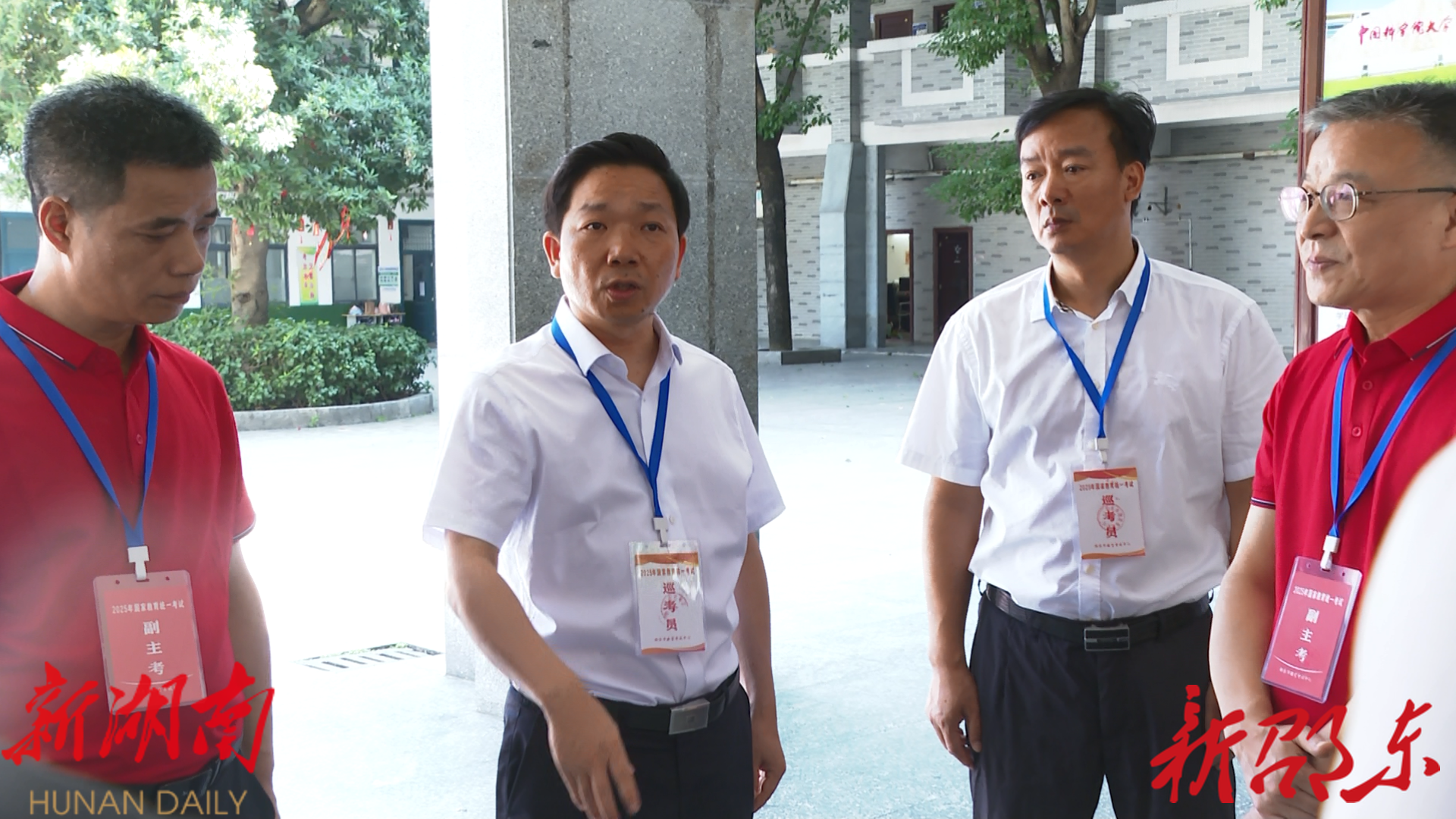 李国军一行先后来到邵东一中、城区二中考点,实地察看了考务办公室、视频监控中心、试卷保管室等关键场所的运行状况,详细了解考务流程规范执行、试卷保密安全管理、考场设施设备保障以及考点周边环境秩序维护等,听取了相关部门的工作情况汇报,并看望一线考务工作人员。