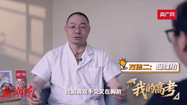 “316”深呼吸法:吸气3秒、屏息1秒、呼气6秒,平复情绪;如果还是感觉心里不安,可配合“蝴蝶拍”动作;若身体不适仍未缓解,需及时告知老师及考场监考人员。