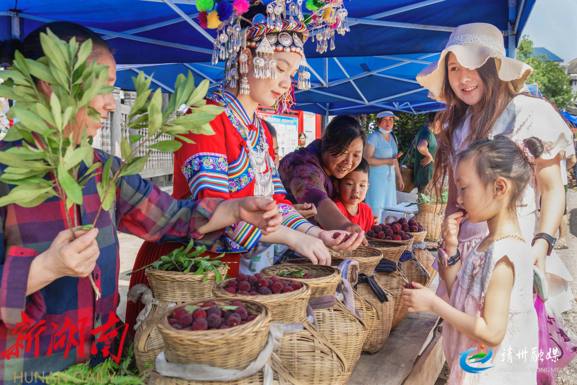 而在鼓楼大街上,杨梅交易红红火火。一颗颗饱满圆润、色泽诱人的杨梅堆满摊位,果香四溢。游客们在欣赏音乐的同时,还能品尝到新鲜的靖州杨梅,感受这夏日里的甜蜜馈赠。
