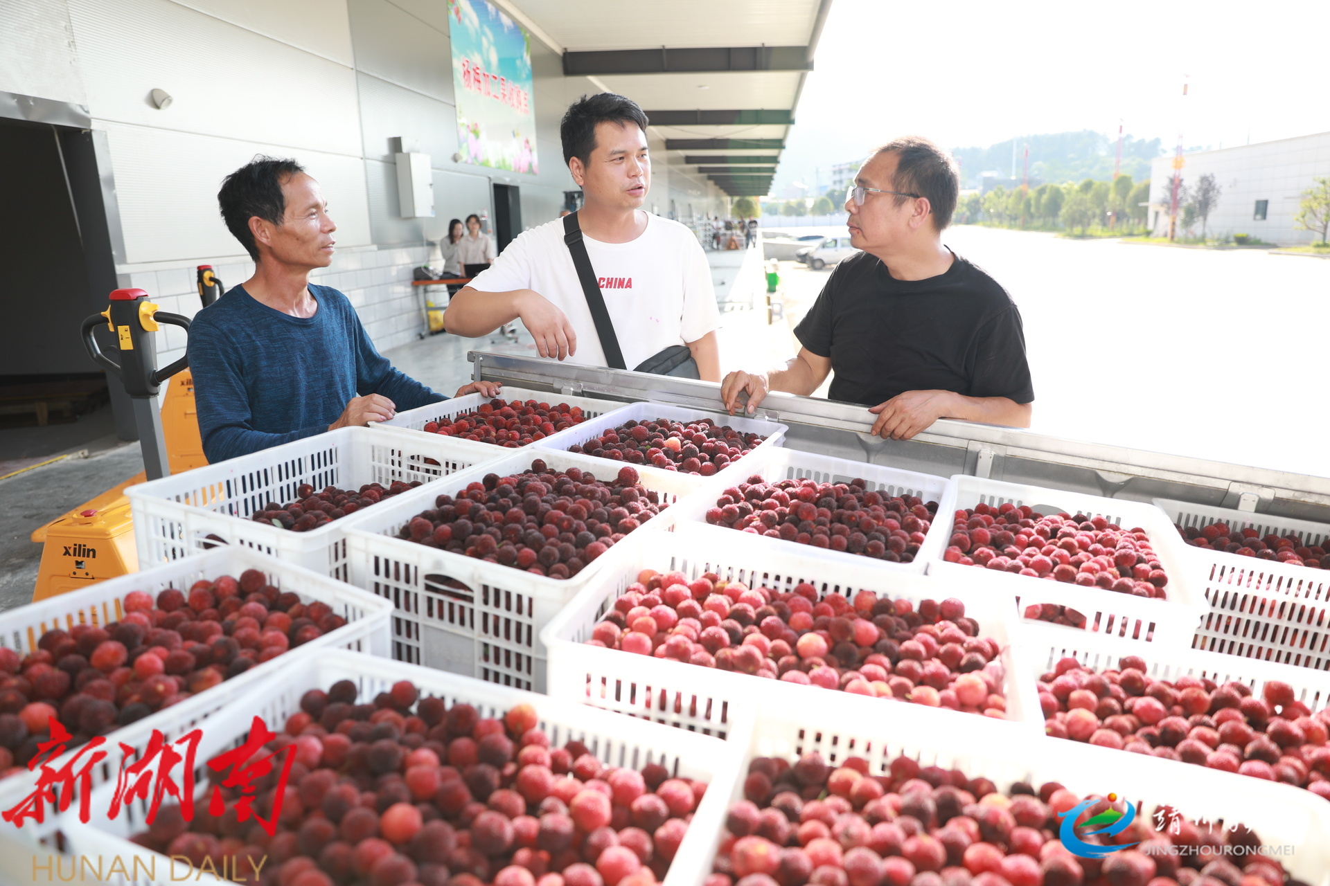 工作人员正在验收梅农送来的杨梅加工果(钦苏芬 摄)
