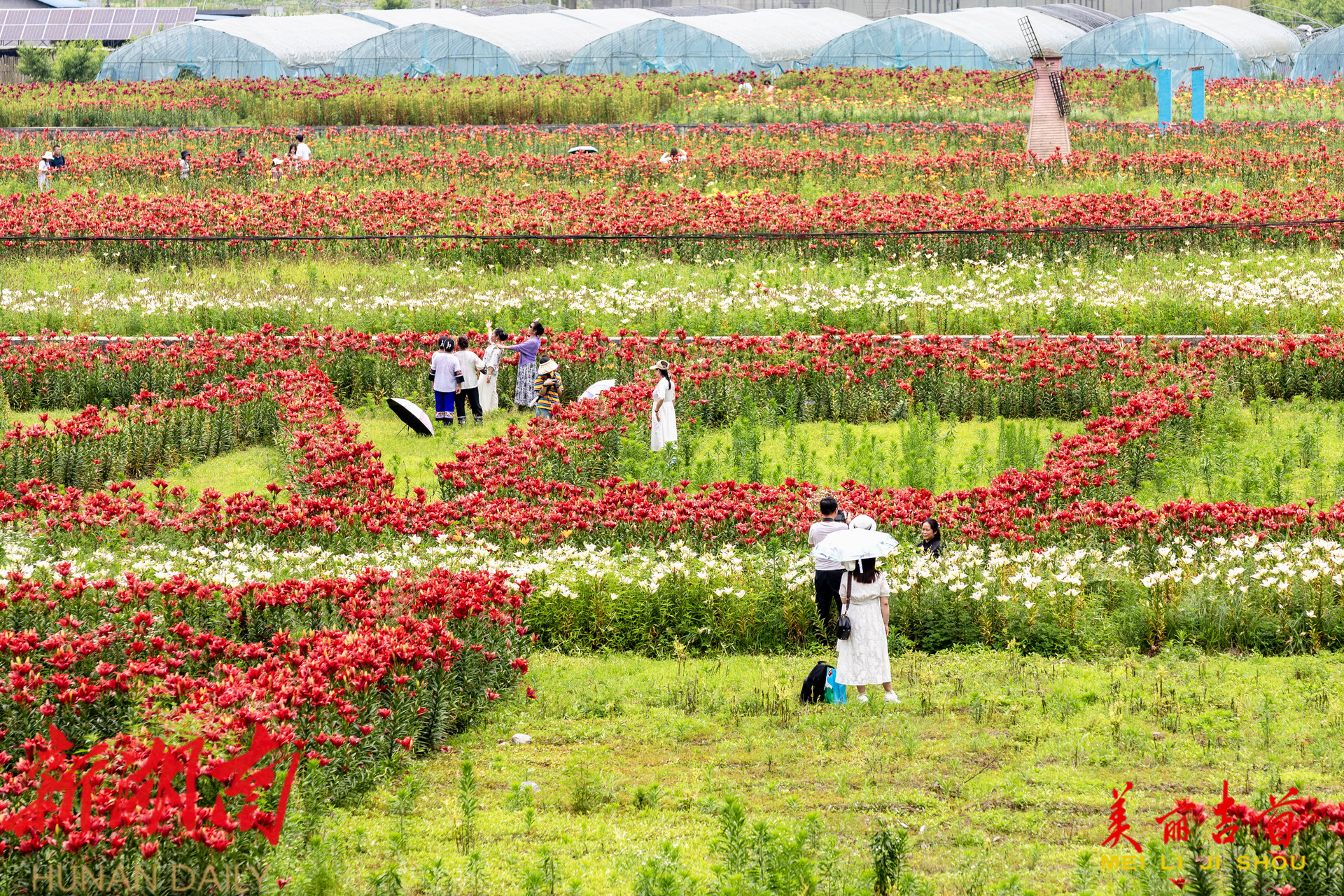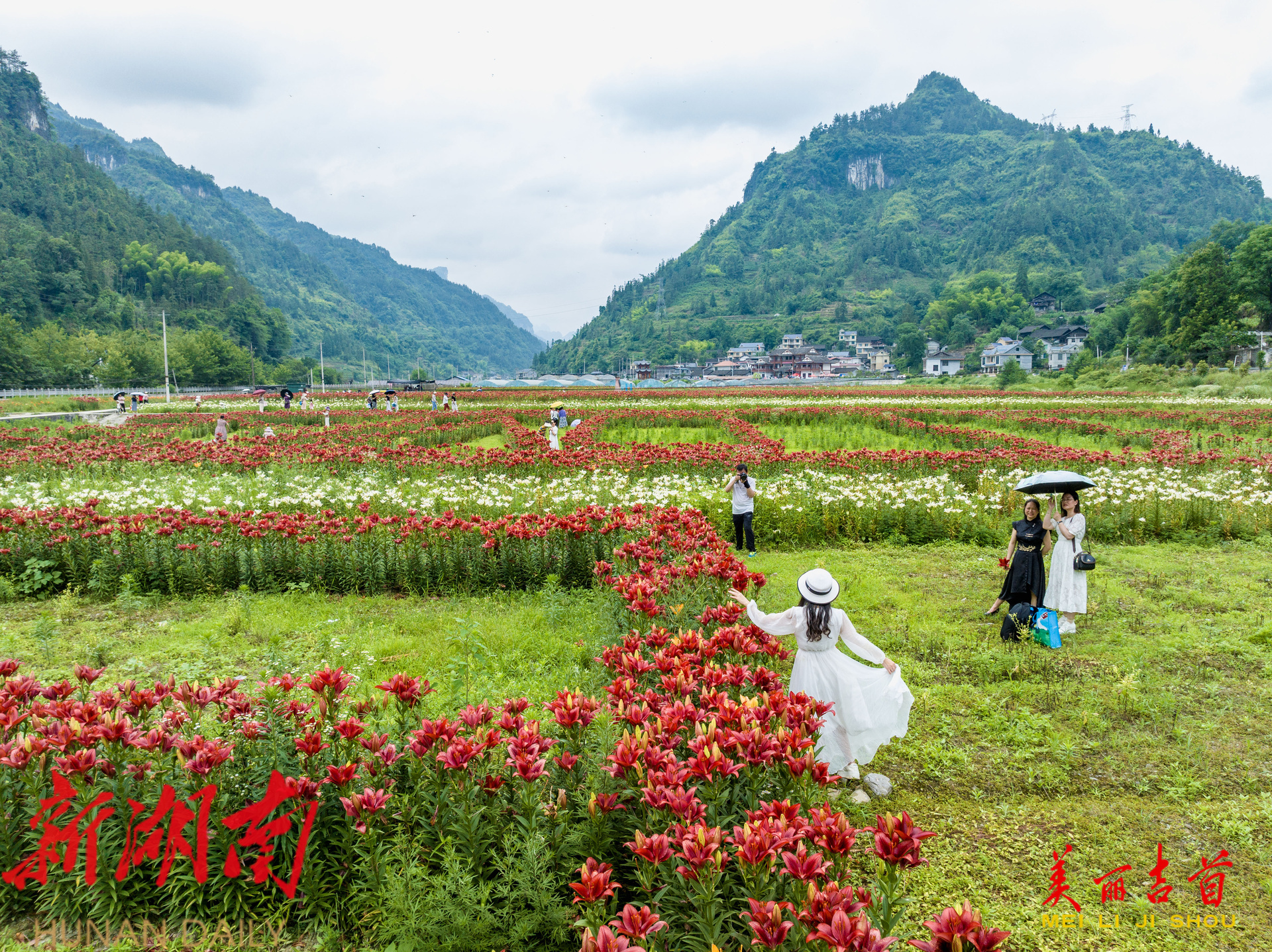 吉首市融媒体中心6月8日讯(全媒体记者 彭璟) 6月7日,吉首市矮寨镇岩科村,游客在百合花海中打卡拍照。仲夏时节,该村百合花博览园内的各色百合花竞相绽放,绚丽的花海吸引游人前来赏花游玩、体验采摘乐趣。近年来,该村通过发展特色种植和农旅融合产业,有效带动乡村旅游发展,促进农民增收,助力乡村振兴。