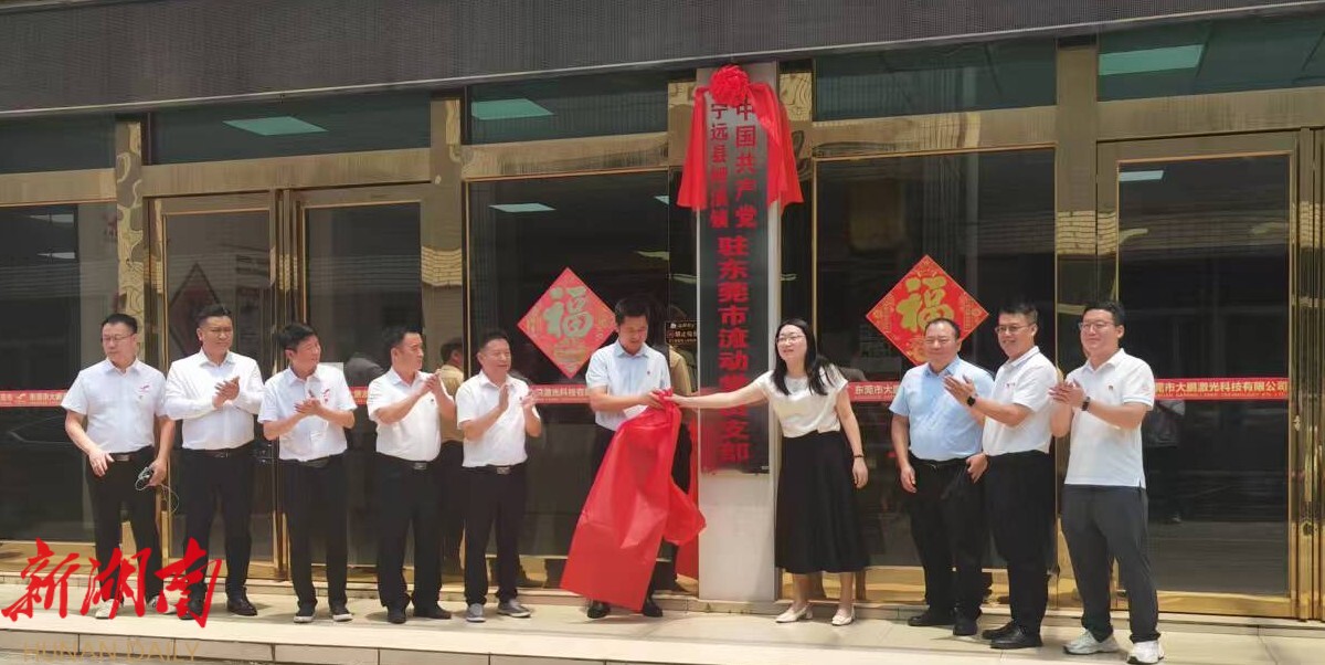 湖南日报·新湖南客户端6月9日讯(通讯员 周宇群 ) 近日,宁远县鲤溪镇驻东莞市流动党员党支部成立大会暨揭牌仪式在东莞市大鹏激光有限公司举行。鲤溪镇、东莞市大岭山镇相关负责人,东莞市欧旻工业园党支部负责人以及流动支部全体党员出席会议并参加揭牌仪式。