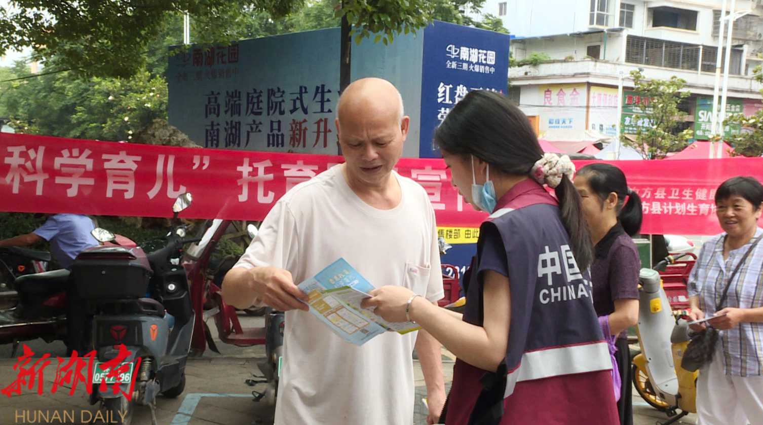 中方融媒6月9日讯 (记者:舒千羽 通讯员:周桥友)6月9日上午,中方县卫生健康局组织县计生协、县疾控中心、县妇计中心及托育服务机构在县中心市场开展以“普惠托育 科学育儿” 为主题的托育服务月集中宣传活动。此次活动通过立体化宣教矩阵,向公众系统传递托育服务政策体系与科学育儿知识。