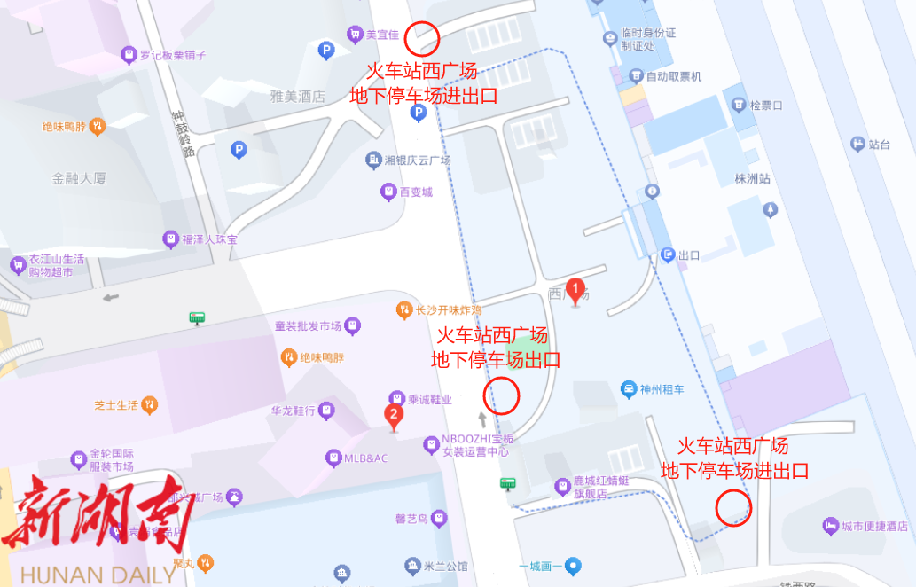 火车站西广场地下停车场共有三个出(入)口,2号铁西路出口(只出不进),其余入口进出均可。