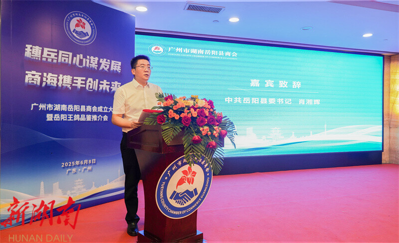 湖南日报·新湖南客户端6月9日讯(通讯员 周星亮) 6月8日,广州市湖南岳阳县商会成立大会暨岳阳王鸽品鉴推介会在广州隆重举行。县委书记肖湘晖出席大会并致辞,县领导周峰、杨前进、刘炀、王敏、敖珊,以及部分岳阳县籍在粤知名老领导,优秀企业家,市、县相关单位负责人等200余人出席本次成立大会,共同见证商会成立的历史性时刻。