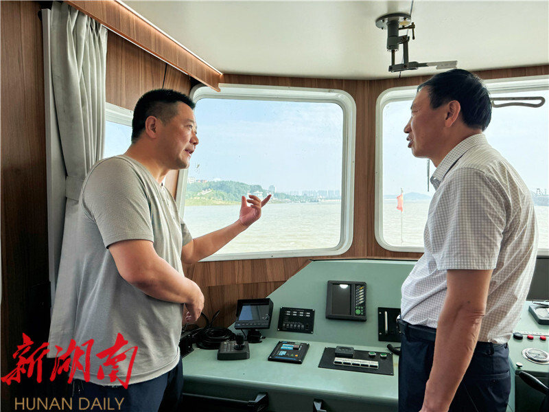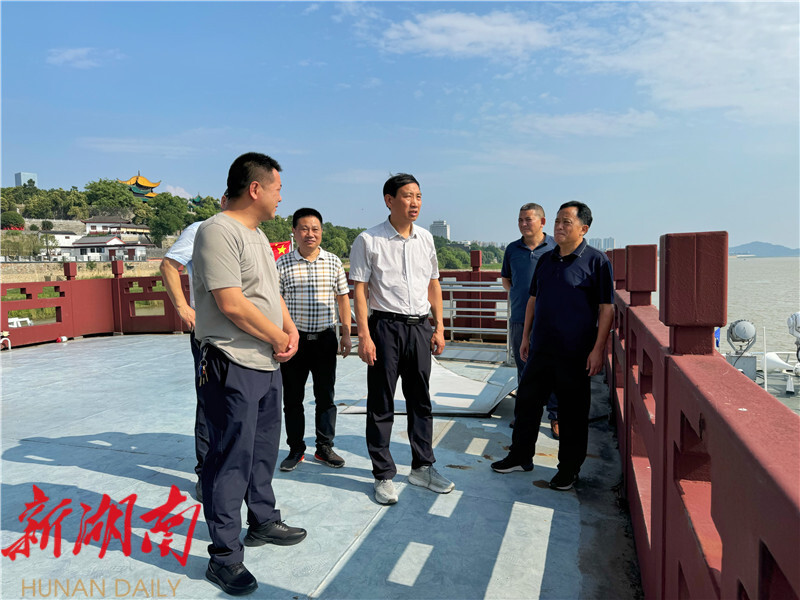 周里一行搭乘巡湖快艇沿扁山—南岳坡—岳阳楼水域沿途察看生态环境变化及水域情况;并就东洞庭湖生态环境保护、禁捕禁钓等工作与执法人员开展深入交流。