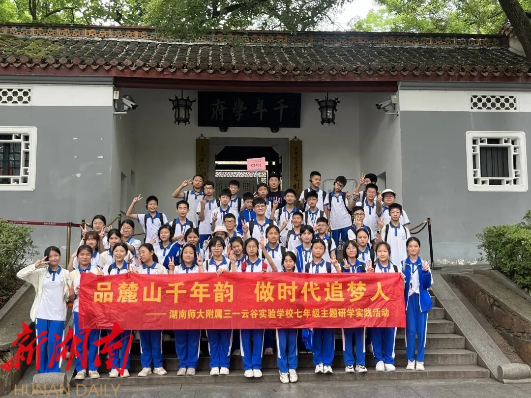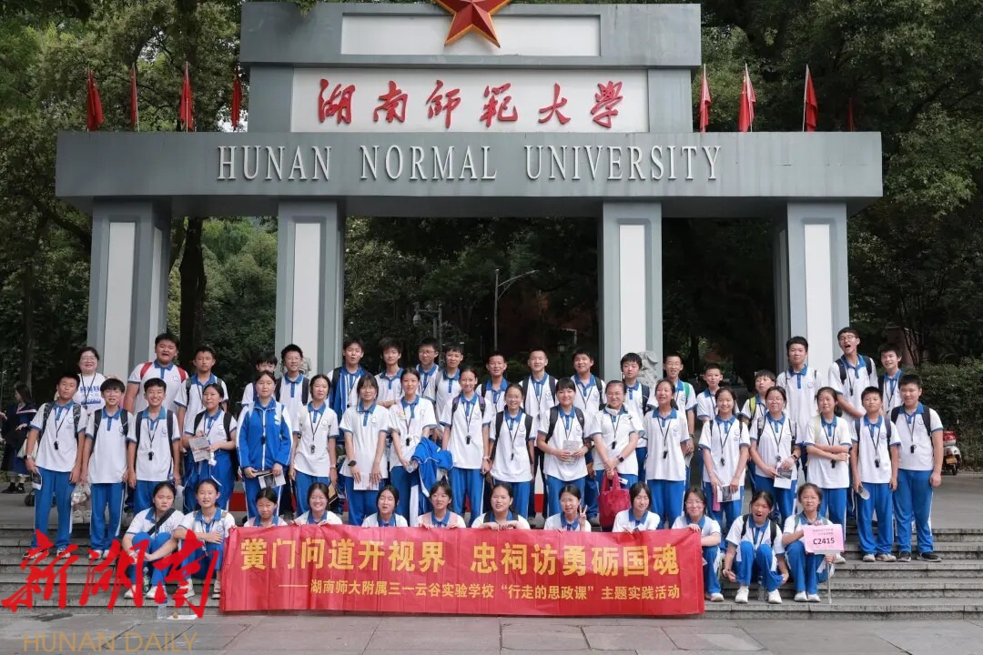 “纸上得来终觉浅,绝知此事要躬行。”6月5日,长沙县湖南师大附属三一云谷实验学校七年级800余名学子来到岳麓山边,展开一场融合千年文脉与时代精神的特殊“思政课”。这场行政的思政课是以“品麓山千年韵 做时代追梦人”为主题,学校经过精心筹备,协调多方资源,带领学子们走进湖南大学、湖南师范大学等高等学校,参观师大校史馆、地学博物馆、动植物标本馆等文化场所及科研设施,探访岳麓山抗战文化纪念园和岳麓书院-爱晚亭的文化遗迹,在观览中探索知识,在体验中汲取力量。