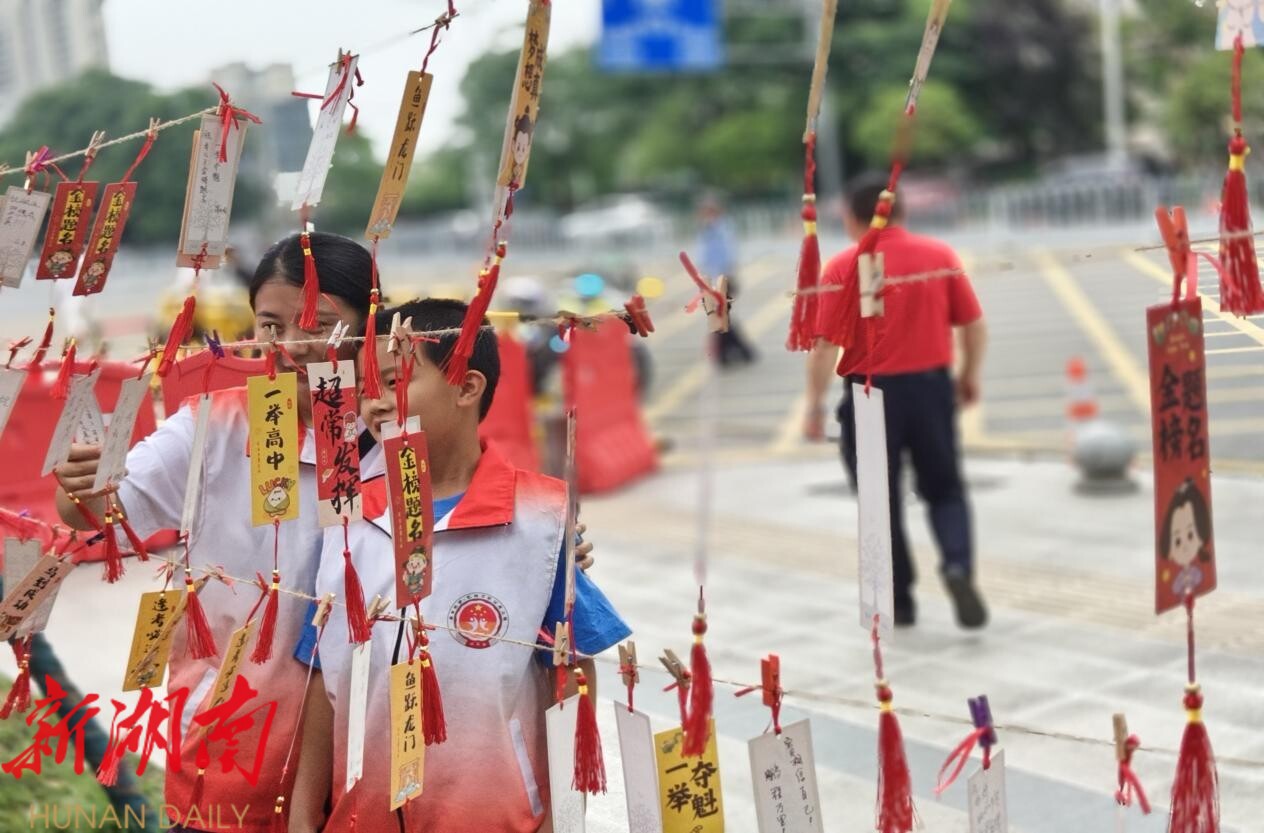 7日晚长沙大雨倾盆,社区网格员以及志愿者们快速响应社区号召,前往周南中学考点附近进行巡查,并轮流进行值班值守,确保护考志愿点物资万无一失;8日凌晨六点,社区联合周南中学对考点周边环境进行清理并对考点防暑降温物资进行整理。开考前,一抹抹志愿红格外显眼。志愿者们忙碌奔波在考场外,协助现场交警开展交通疏导工作,维持考场外秩序,为考生准时迎考保驾护航,也为候考家长送上免费饮用水、纸巾等防暑降温物资,此外,还特别设置了“家书投递”和“心愿书签”等充满温情的互动环节,为考生加油鼓劲。“现场家书投递和心愿书签贴心祝福太有仪式感了。”考生家长李女士笑着说。