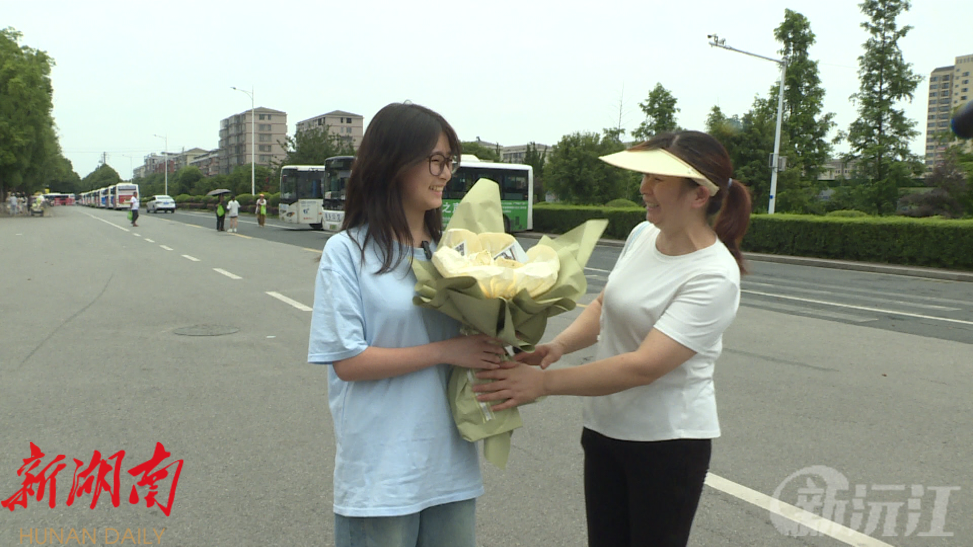新沅江客户端6月9日讯 (记者 朱子豪 李昊宸 谢健朋 谢宇旎) 6月9日中午,沅江市第一中学考点拉响了当天第二场考试结束铃,部分考生圆满完成高考。校门打开的瞬间,他们如离弦之箭冲出考场,迎接鲜花与亲人的拥抱。