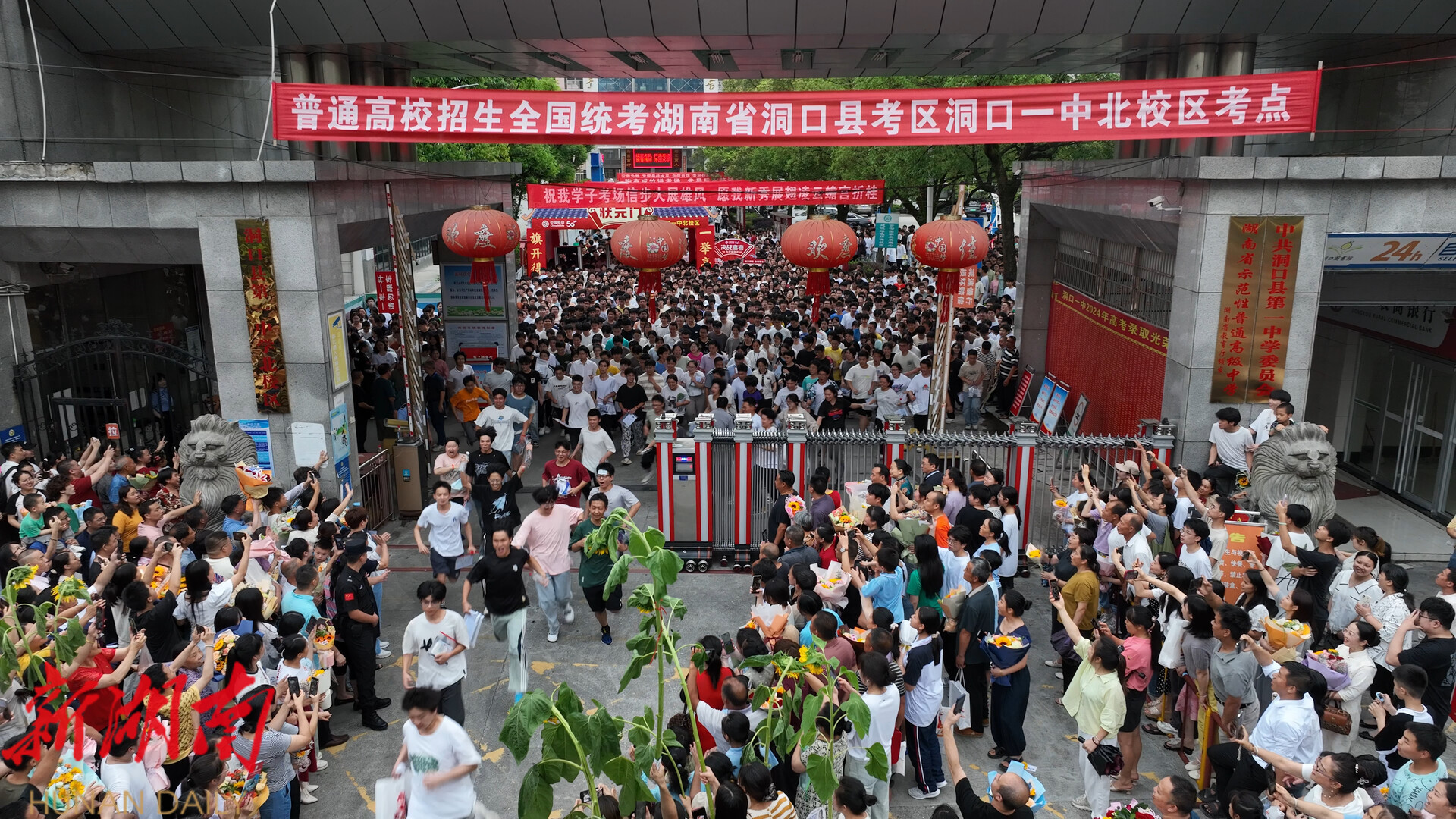 洞口融媒6月9日讯( 记者:胡海鹏 肖皓静 王哲 付泽宇 ) 6月9日下午6点15分,随着最后一门生物科目考试结束铃声准时响起,洞口县202 5 年高考圆满结束 。