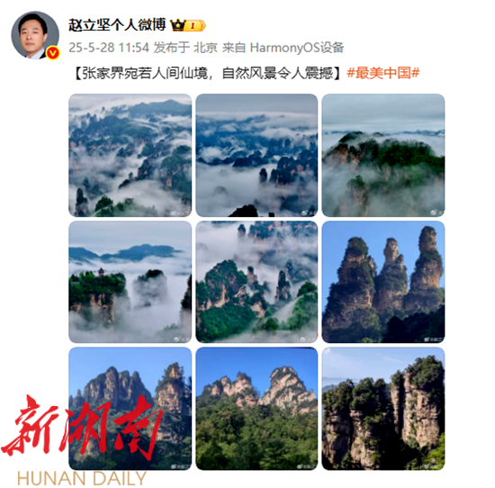 湖南日报·新湖南客户端5月28日讯(通讯员 张婷) 5月28日,外交部赵立坚在个人微博上向全球热情推介张家界国家森林公园,盛赞其宛若人间仙境,自然风景令人震撼。这一推介迅速引发海内外网友热烈反响,众多网友纷纷留言,为张家界国家森林公园“打call”,张家界的壮美景观和独特魅力再次成为全球关注的焦点。