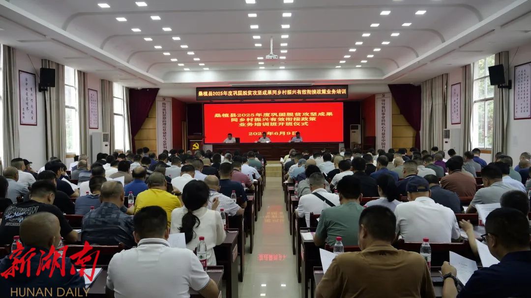 湖南日报·新湖南客户端6月10日讯(通讯员:肖君)6月9日,桑植县2025年度巩固拓展脱贫攻坚成果同乡村振兴有效衔接政策业务培训班开班。副县长周擎出席开班仪式,全县23个乡镇乡村振兴办主任、业务骨干及驻村第一书记等200余人参加培训。