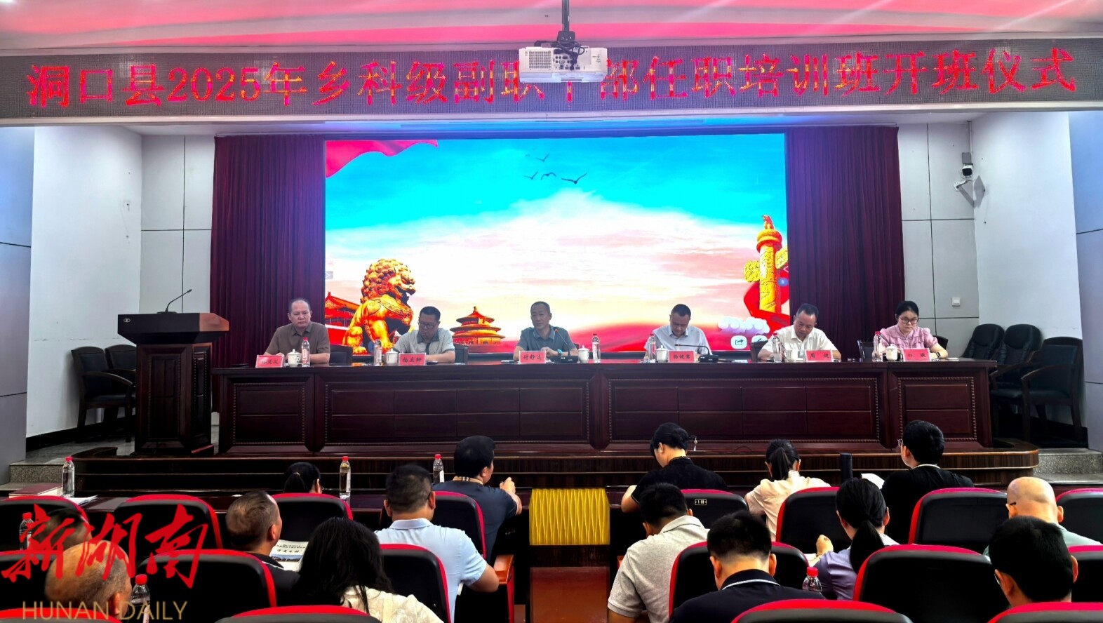洞口融媒6月10日讯 (通讯员:胡娴 尹冰) 6月10日上午,洞口县2025年乡科级副职干部任职培训班在县委党校正式开班。来自县直部门及各乡镇(街道、管理区)的40名新提任乡科级副职干部参加培训。