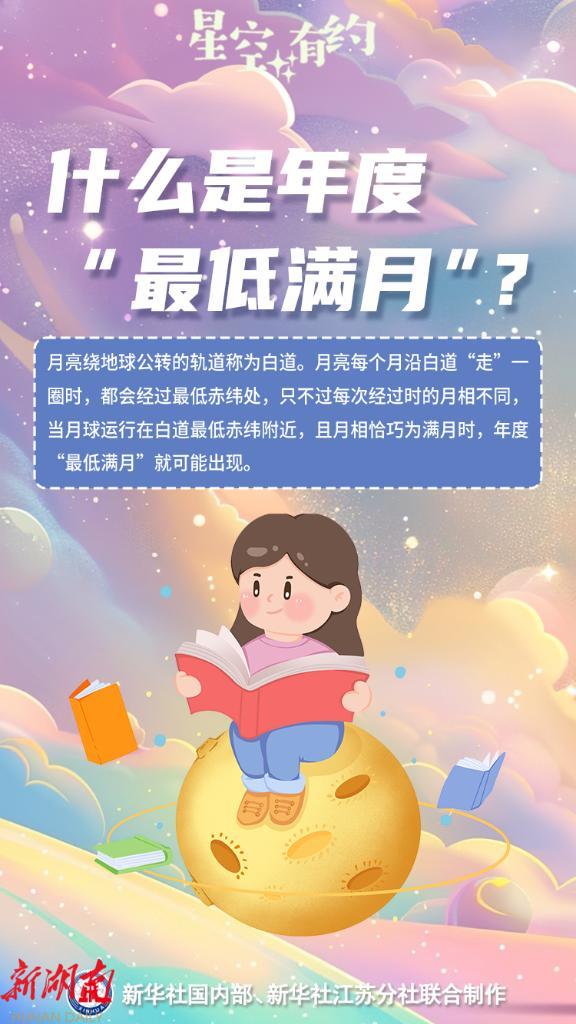 中国科学院紫金山天文台科普主管王科超介绍,月亮绕地球公转的轨道称为白道。每个月,月亮沿白道“走”一圈,其地心视赤纬随之变化,这意味着它在天球上的位置会不断发生改变。“类似于地球上的纬度,赤纬相当于标记天体在天空中位置的‘南北身份证’。月亮每月运行时都会经过最低赤纬处,只不过每次对应的月相各不相同,当月球运行在白道最低赤纬附近,且月相恰巧为满月时,年度‘最低满月’就可能出现。”