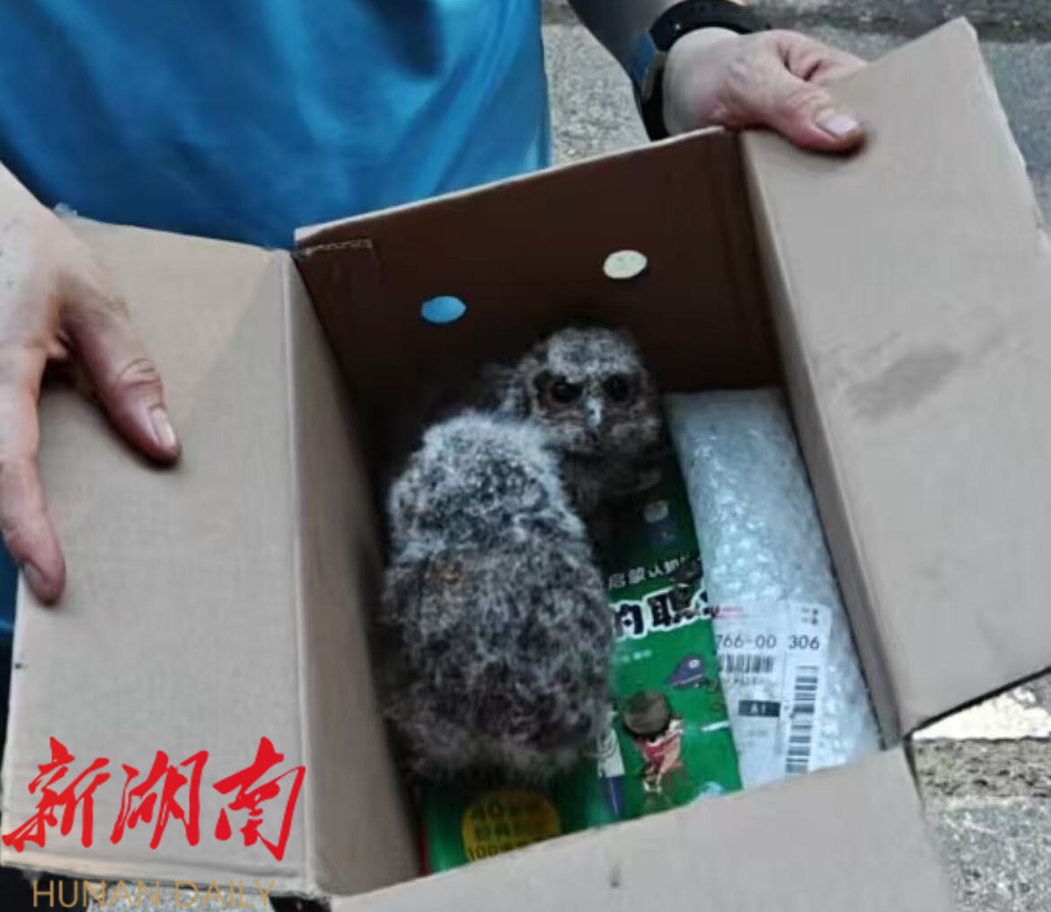 湖南日报·新湖南客户端6月10日讯(通讯员 欧燕菊) “你好,我家后院飞来两只大眼‘怪鸟’,看着像保护动物。”近日,柏家坪镇柏家村村民柏女士的一个紧急电话,引发了一场守护野生动物的暖心接力。镇政府、派出所与野生动物保护站迅速联动,成功救助国家二级保护动物猫头鹰。