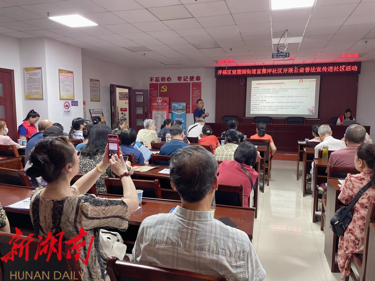 湖南日报·新湖南客户端6月10日讯(通讯员 朱秀云)为深化辖区居民法治意识,筑牢安全防护屏障,6月10日,开福区望麓园街道富雅坪社区携手长沙中科云律网络科技有限公司富猫法务,在社区新时代文明实践站开展公益普法宣传活动,吸引50余位居民及辖区网格志愿队热情参与。