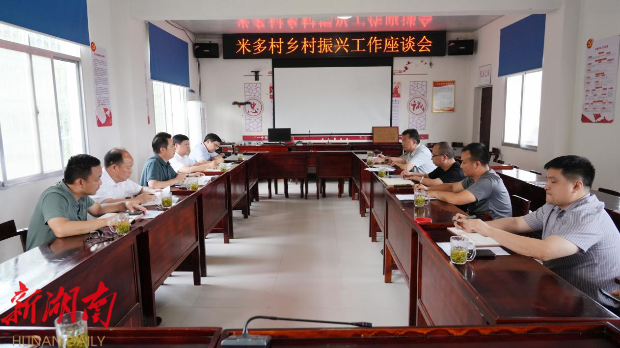 在座谈会上,滕朝辉听取了省委政法委驻村工作队和镇村工作汇报,滕朝辉充分肯定了该村乡村振兴工作成效。他指出,要肯定成绩、抓住机遇,坚定发展信心,米多村在各级支持下,产业发展呈现新亮点、村容村貌实现新提升、群众增收取得新成效,特别是“坨粘”品牌建设初见成效,畜牧养殖业发展态势良好,非遗传承保护成果较丰硕,研学产业基础不断夯实。镇村两级要学习运用好“千万工程”经验,抓住发展机遇、主动担当作为,借助工作队力量,努力将米多村打造成为乡村振兴示范村。