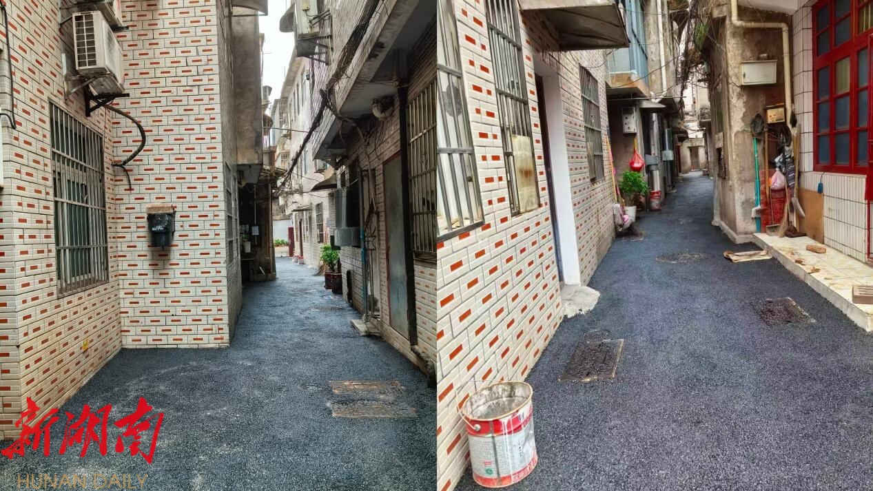 近日,长沙市开福区荷花池社区茅亭子一条巷迎来华丽蜕变——曾经坑洼连片、雨季积水没踝的320米巷道,如今铺展着黝黑平整的沥青路面,崭新的排水管网在地下静静运行。