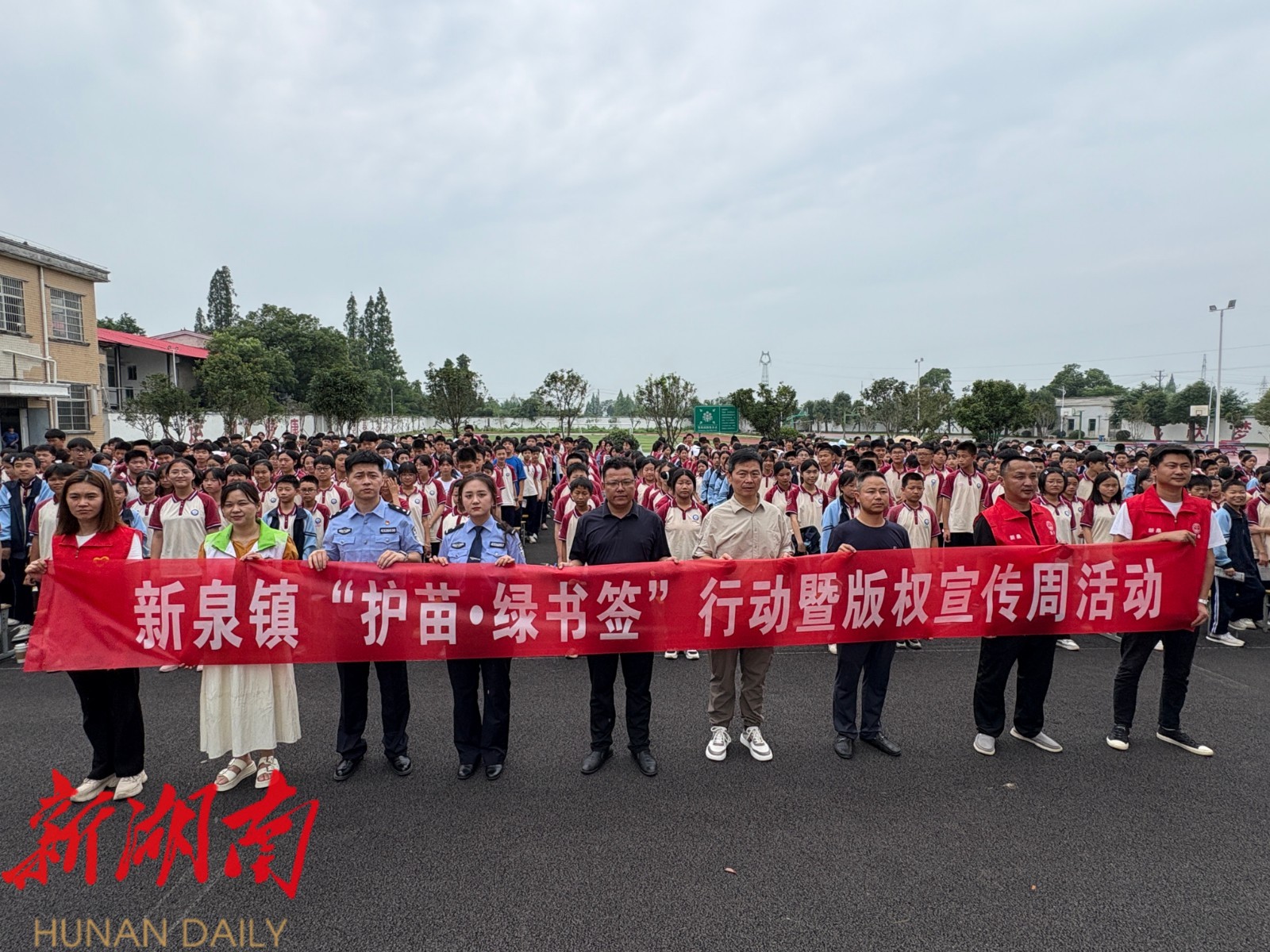 湖南日报·新湖南客户端6月10日讯(通讯员 谭西雅)6月10日,湘阴县新泉镇新时代文明实践所联合镇司法所、综治办、社工站等部门走进新泉中学,开展“护苗·绿书签”行动暨版权宣传周活动,以“绿色阅读”为纽带,为青少年编织抵御文化污染的“防护网”,在校园里播撒文明成长的“种子”。