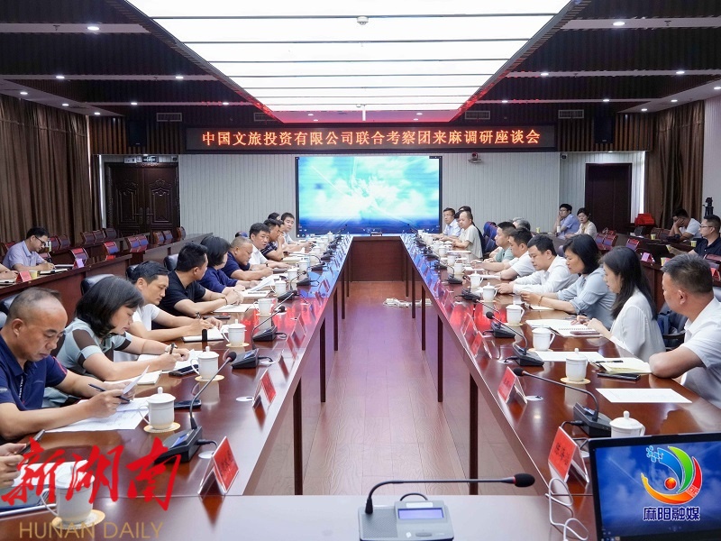 麻阳融媒6月10日讯( 记者 符宁波 向飞宇 ) 6月9日,中国文旅投资有限公司联合考察团一行来到麻阳,就石羊哨旅游度假区项目开展专题调研,并召开座谈会,为麻阳打造区域旅游新高地注入强劲动能。县委书记江涛主持座谈会并讲话,中国文旅投资有限公司董事局主席曹虎,中建六局总承包有限公司党委书记、董事长代连水出席,县领导阳承凡、向翼、杜越峰、杨华参加。