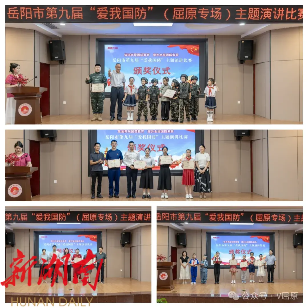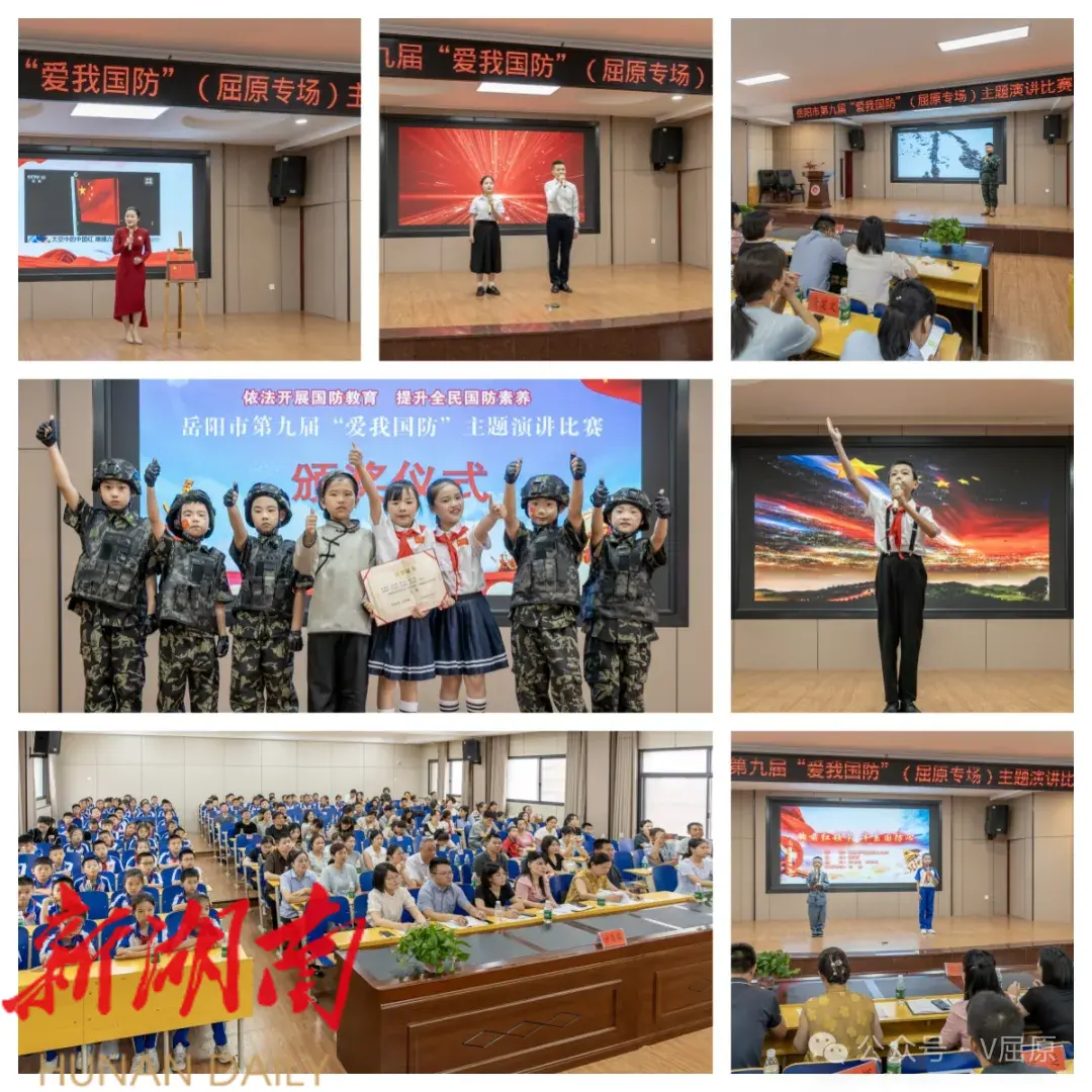 湖南日报·新湖南客户端6月11日讯(通讯员: 何宇) 6 月 10 日,岳阳市第九届 “爱我国防” (屈原专场)主题演讲比赛在屈原二小成功举办。本次活动由区党委宣传部、区教育体育局、区退役军人事务局、区总工会、共青团区委、区妇联联合主办,屈原二小与新华书店协办,区党委委员、宣传部部长胡志刚出席活动并为获奖选手颁奖。