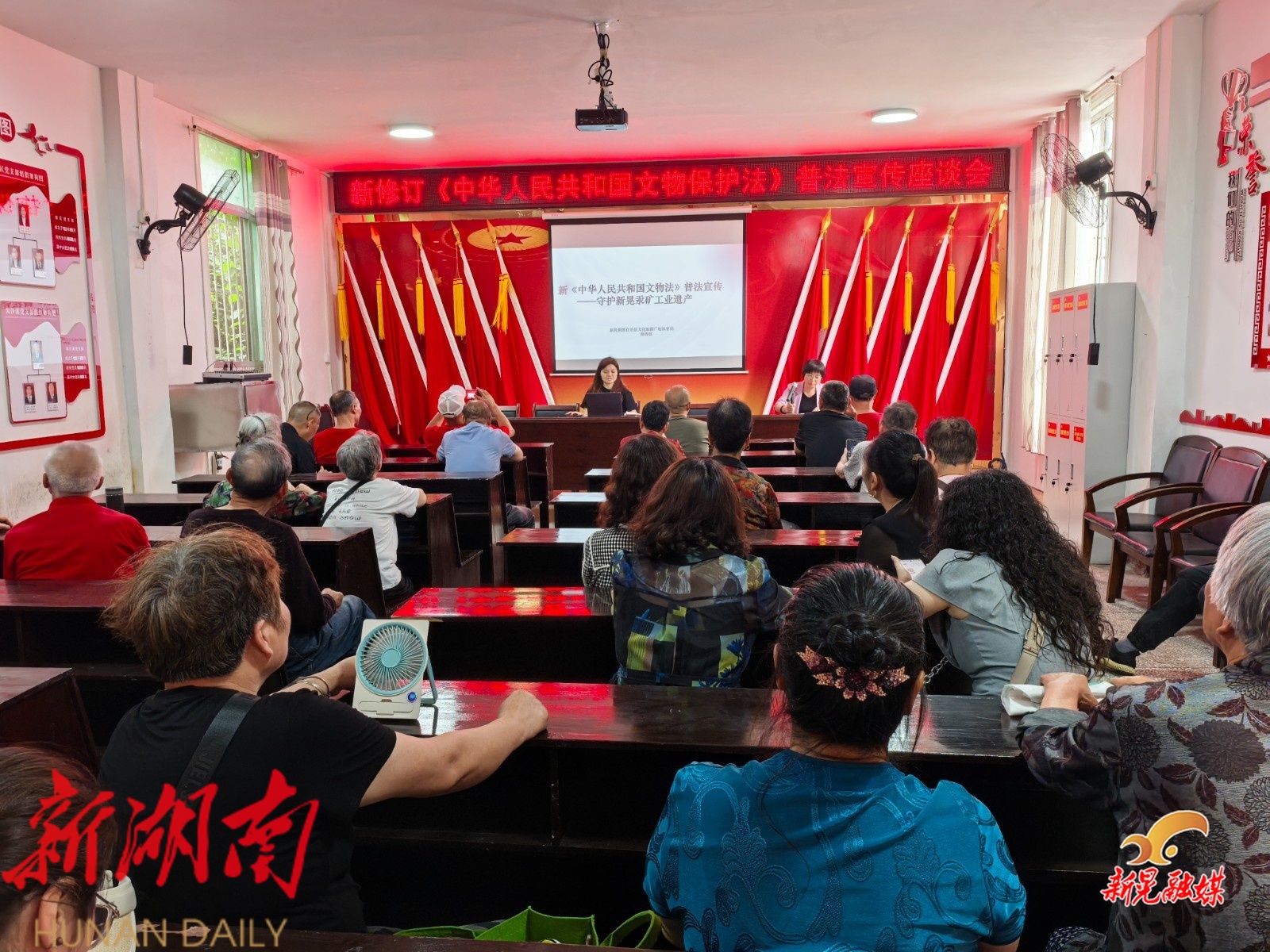新晃融媒6月11日讯(通讯员:杨子漳)为进一步提高汞矿居民文物保护意识和法治观念,让新修订《中华人民共和国文物保护法》走进千家万户,6月9日,新晃中兴总公司留守处邀请新晃文化旅游广电体育局文保股在酒店塘社区举办专题普法宣传座谈会。辖区老党员、居民代表、社区工作者及部分对历史文化感兴趣的居民参加。