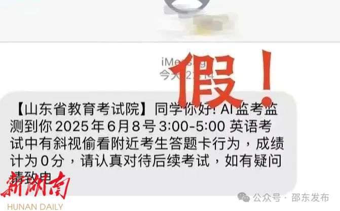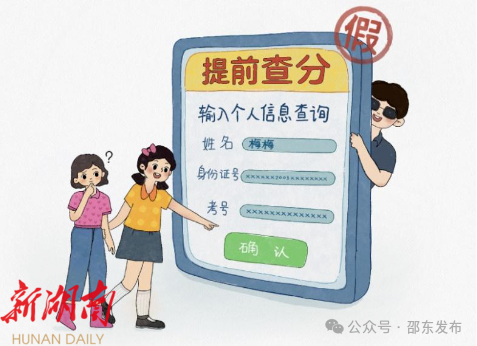 不法分子往往利用家长和考生急切知道成绩的心理, 群发短信,声称可查询高考成绩,并附有网址链接。家长和考生一旦点开网址,将可能被植入木马软件,导致个人信息泄露,甚至银行卡信息被盗取。还有的不法分子会直接开价,要求家长付费查询分数。 高考成绩查询有官方指定的正规渠道,切勿轻信不明来源的查分信息。