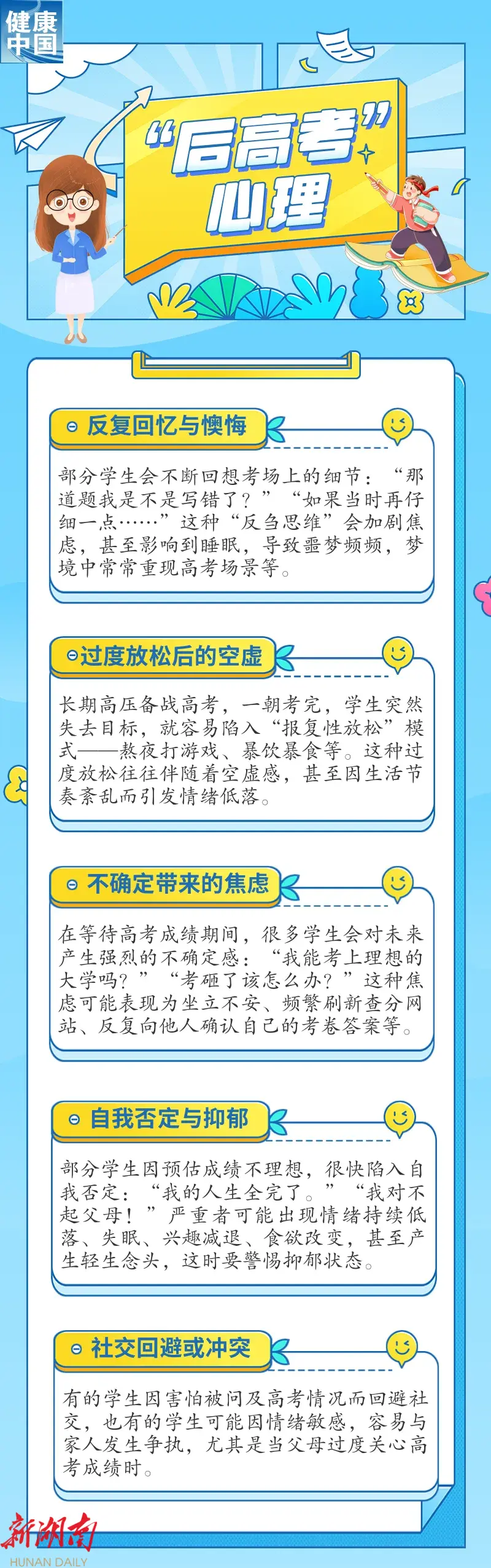 家长该如何识别孩子的异常心理表现?孩子高考后的抑郁或焦虑状态会带来哪些影响,又该如何科学应对?我们提前做好攻略,跟孩子一起实现顺利过渡。