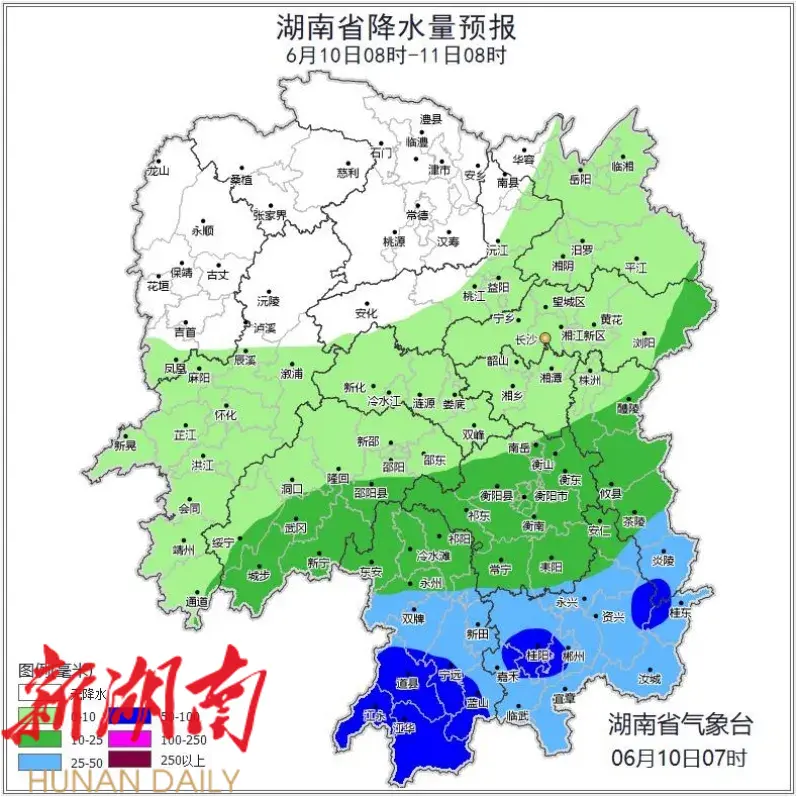 10日白天至晚上,湘中以北阴天转多云,其他地区阴天有小到中雨,其中湘南部分地区大雨,株洲(炎陵)、永州(道县、江华、江永、蓝山、宁远)、郴州(市区、桂东、桂阳、嘉禾、资兴)局地暴雨,11日清晨湘西北局地有雾;北风2~3级;最高气温28~33℃,最低气温21~24℃。