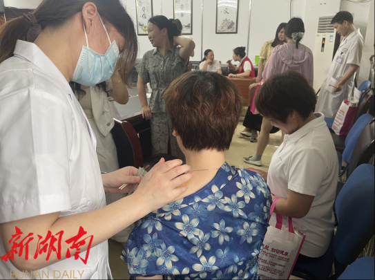 讲座结束后,县妇幼保健院经验丰富的中医医师和理疗师们为活动现场的人群提供了专业的推拿按摩、艾灸、拔罐、针灸等中医特色理疗体验服务。针对普遍反映的颈肩腰腿痛、慢性疲劳、关节不适等常见问题,给予了个性化的康复指导和日常保健建议。