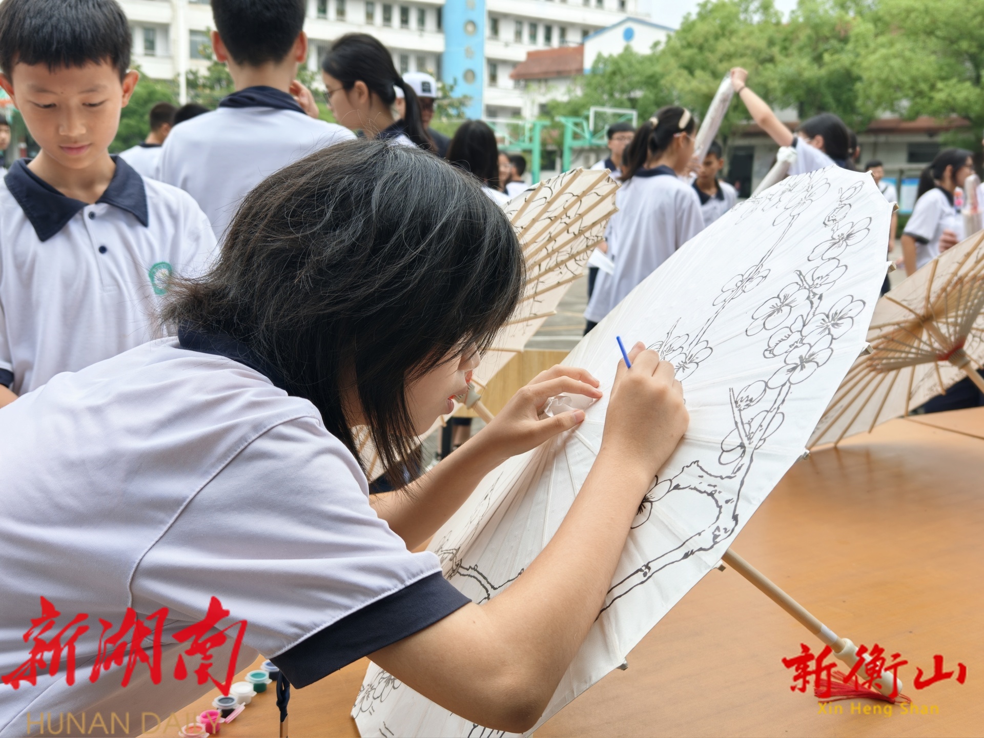 (学生正在DIY油纸伞)