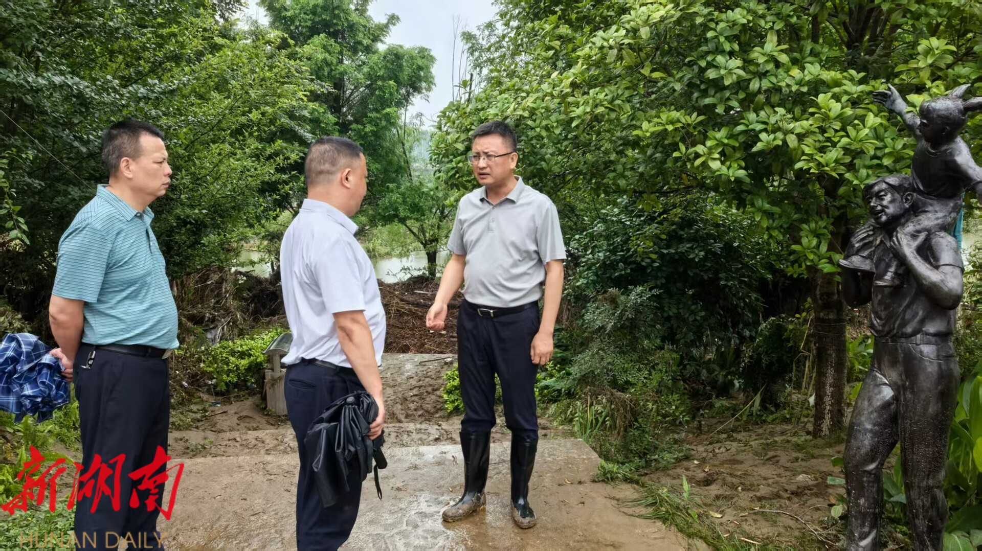 在伏龙洲,许治国实地察看河道行洪、水利设施受损情况,详细了解巡查管理、水位监测系统运行状况。