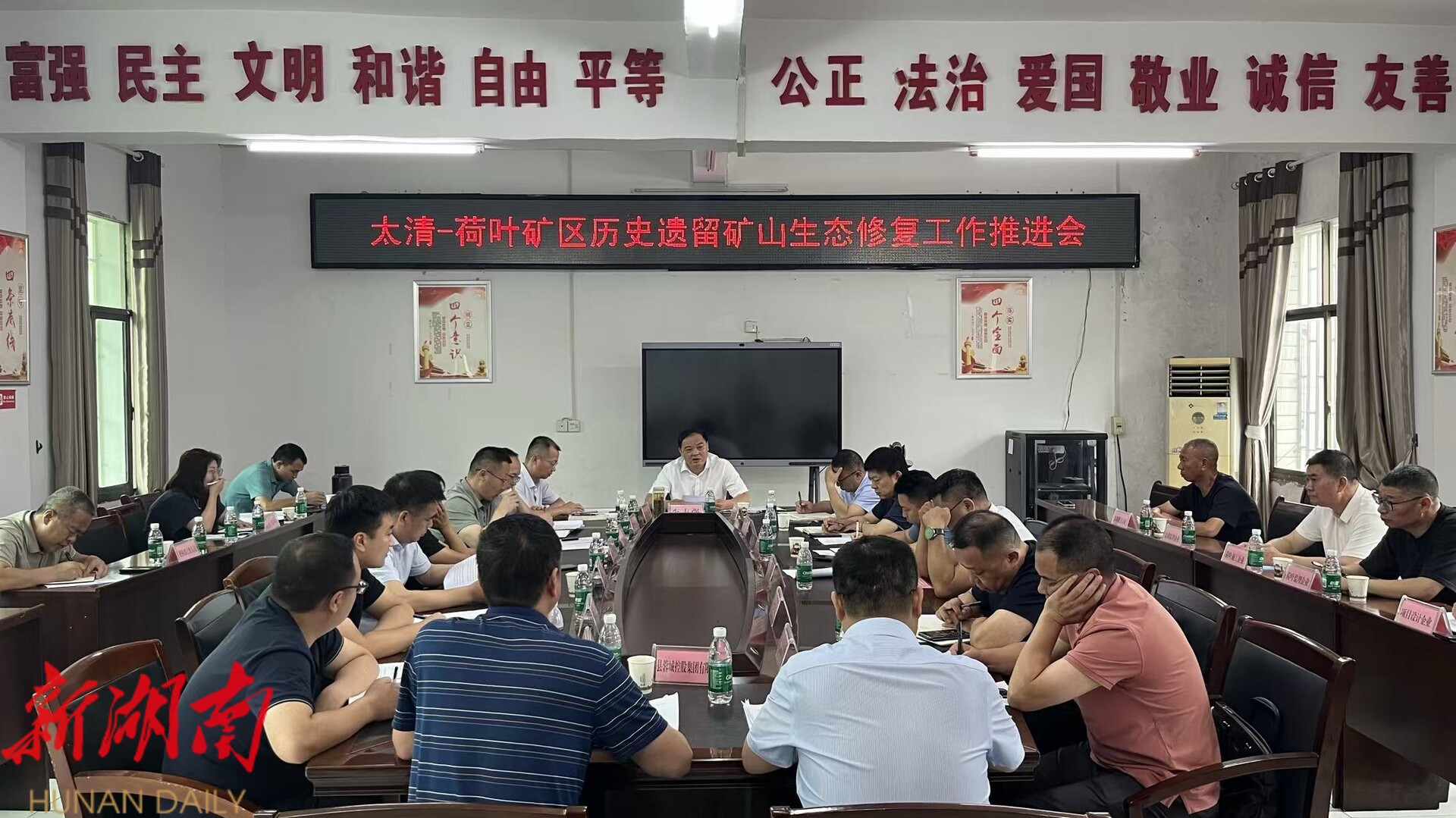 新桂阳6月11日讯(记者 邓琴 )6月10日,县委副书记、县长李志强到太和镇调研太清—荷叶矿区历史遗留矿山生态修复工作。
