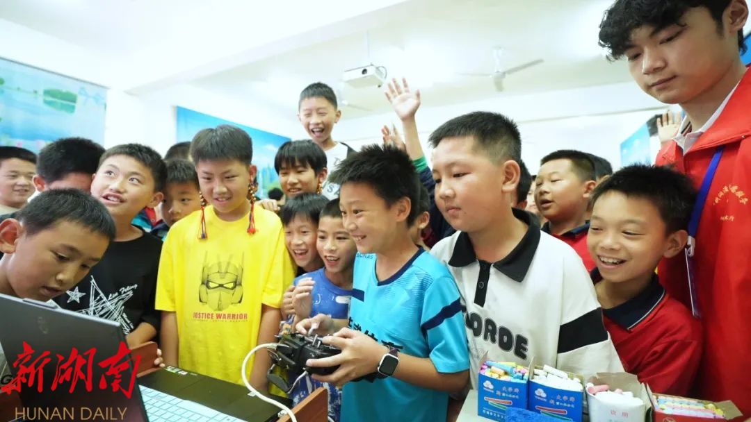 5月28日,科普进校园活动走进童市镇小学,专业无人机团队带来震撼的编队飞行表演。多架无人机在高精度定位技术操控下,伴随音乐精准变换队形,将人工智能与航空技术的魅力展现得淋漓尽致,现场师生惊叹连连。