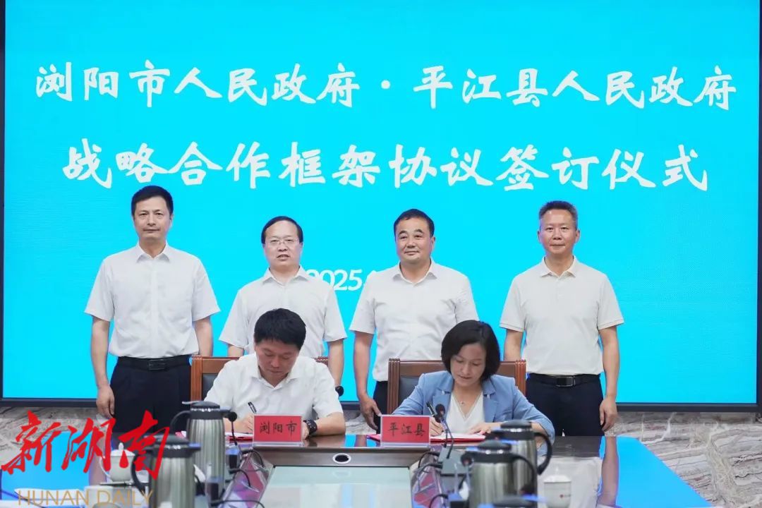 “浏阳和平江地缘相接、人缘相亲、文缘相融,历来都是山水相依的好邻居、合作共赢的好伙伴、真诚互信的好兄弟,彼此的深厚情谊源远流长。”刘正仁表示,希望双方以此次考察为契机,进一步强化产业共兴,共同推动产业链上下游有机融合与协同发展,共建跨区域特色产业链群;进一步强化交通共联,一起推进岳平浏高速 早日动工建设,持续完善交通互联互通网络;进一步强化服务共享,在就业、教育、医疗、旅游、生态等方面达成更深层次、更广领域合作,合力打造区域合作示范样板;进一步强化机制共建,在政策争取、产业发展、项目建设等方面深入谋划、协同发力,共同确保各项协议条款落到实处、见到实效。