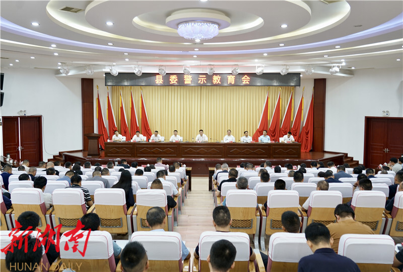 湖南日报·新湖南客户端6月12日讯(通讯员 熊佳 罗爽) 6月11日,县委书记肖湘晖主持召开县委警示教育会,强调要深入学习贯彻习近平总书记关于加强党的作风建设重要论述精神,进一步深化以案说德、以案说纪、以案说法、以案说责,推动全县学习教育走深走实,为加快推进“四区”建设和全县高质量发展提供坚实作风保障。县委副书记、县长吴光文,县人大常委会主任周峰,县政协主席周里出席。
