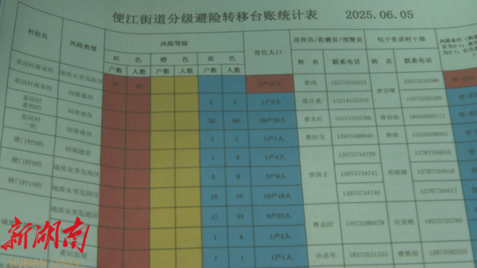 在便江街道,工作人员正在对25个行政村,393个村民小组,15个社区的切坡自建户、山洪易发区、低洼区、土坯房等重点区域数据,按照“红、黄、蓝”三级标准逐一标注,形成“一户一档一坐标”的精细化风险地图。每户位置关联地形地貌、水文特征等环境信息,实现“一图知全域、一点明详情”为精准制定转移方案提供直观依据。