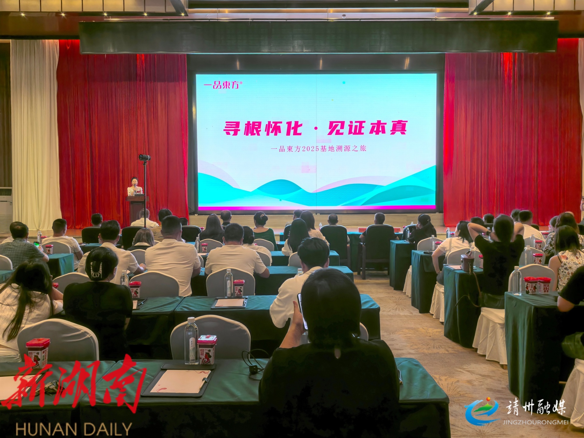 当天,湖南一品东方还举办“寻根怀化 见证本真”基地溯源会,邀请业内权威专家深入解读产品。专家从杨梅的营养价值和黄精的药用价值入手,剖析产品功效与优势,分享公司如何将传统养生理念与现代科技融合,打造健康美味的产品。会上还举行了签约仪式和优秀经销商颁奖活动。