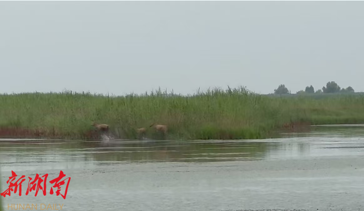 湖南日报·新湖南客户端6月12日讯(通讯员 梁焕鑫 李赛)6月11日,晨光熹微中,横岭湖省级自然保护区张家汊管理站水域被一层薄雾轻笼。碧波深处,三头麋鹿悠然涉水而行,它们以家族形态,首次现身于此。