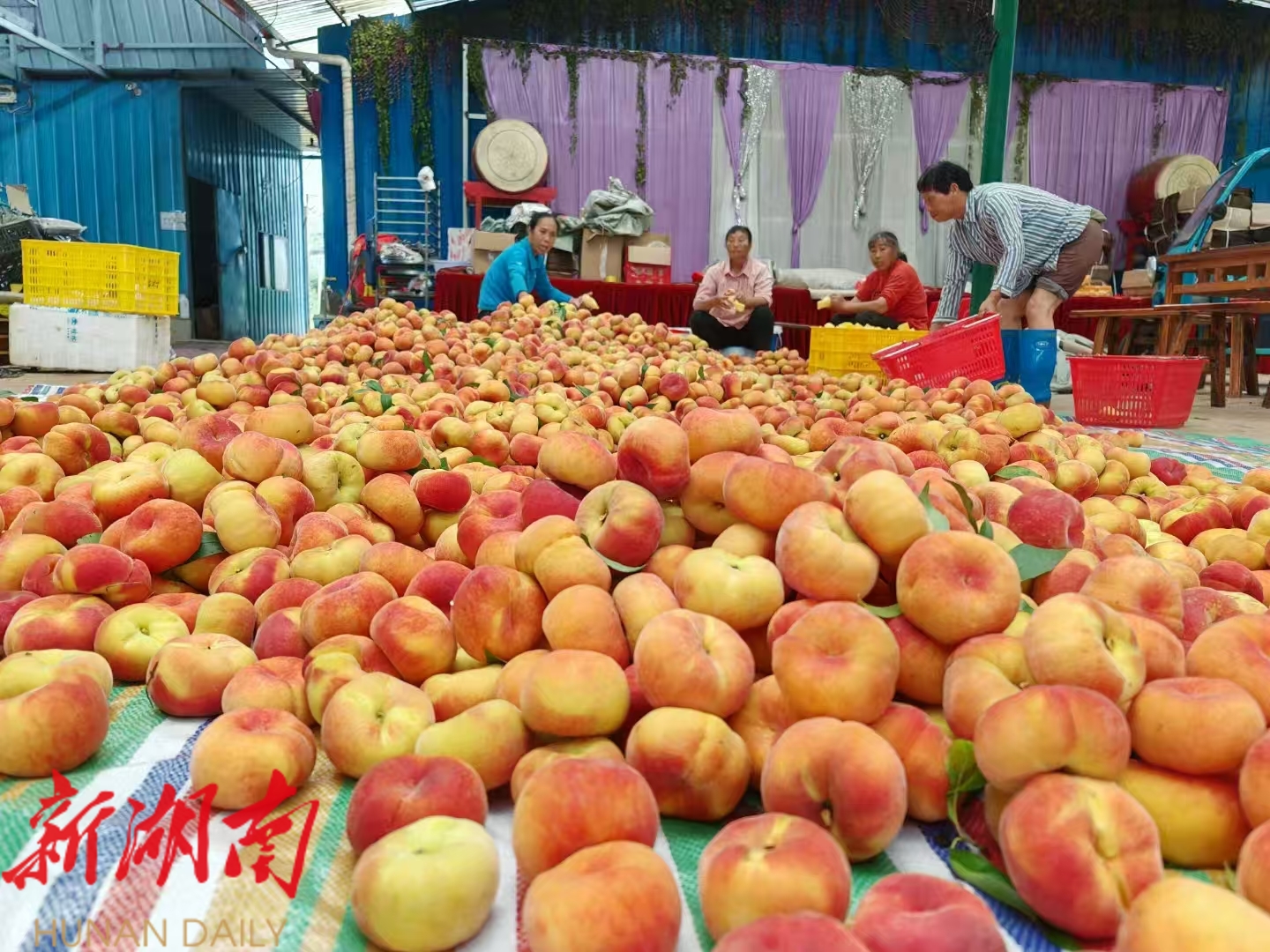 湖南日报·新湖南客户端6月12日讯(通讯员 赵贵松 刘志强)当前正值瓜果丰收季,零陵区接履桥街道零陵古村生态园的蟠桃迎来采摘期,枝头挂满累累硕果。