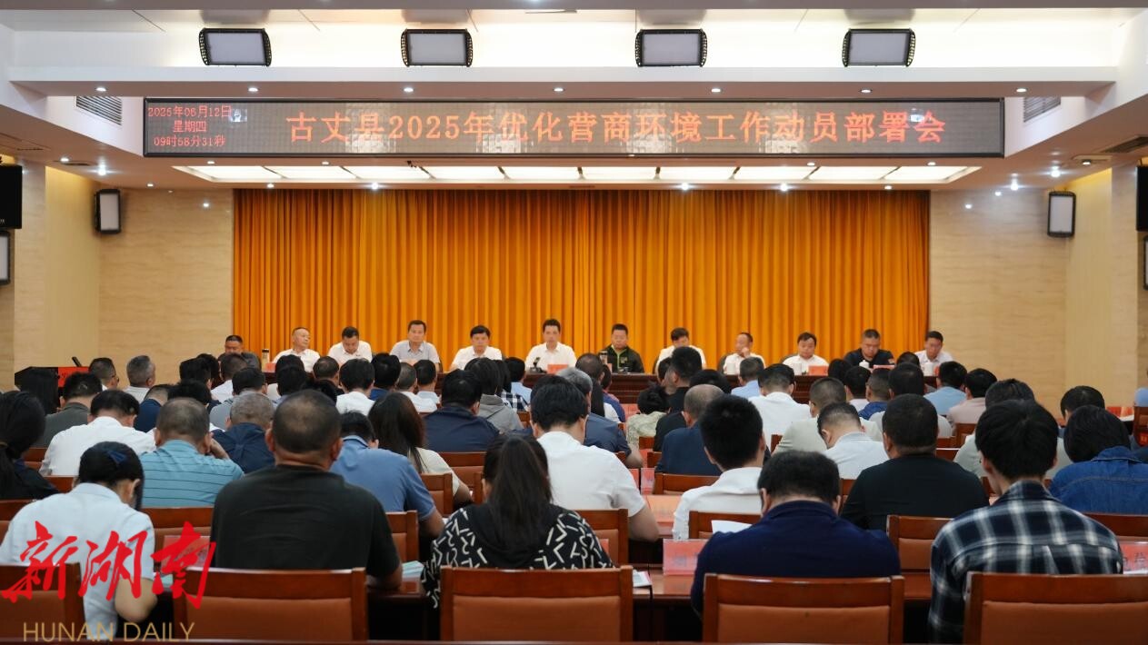 新湖南客户端6月12日讯(通讯员 郑湘)6月12日,古丈县召开2025年优化营商环境工作动员部署会。县委书记滕朝辉出席并讲话。他强调,要深入学习贯彻习近平总书记关于优化营商环境的重要论述,以更坚定的决心、更精准的举措、更务实的担当优化营商环境,全力打造一流营商环境,为县域经济高质量发展提供坚实保障。