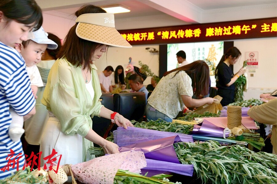 比赛结束后,该镇组织干部职工和家属在会议室编织“廉洁艾草花”,主持人以屈原故事为引,深入解读端午包粽子、挂艾草等习俗背后的文化内涵,一束束“廉洁艾草花”既承载驱邪避疫的节日祝福,更寄托着“艾传清风,正气长存”的深意,干部职工们纷纷将花束带回家中,让廉洁文化融入日常生活。