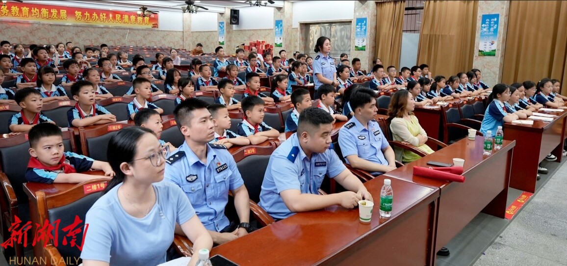 湖南日报·新湖南客户端6月12日讯(通讯员 徐晚晴)“这样的法治课太有趣了,我学到了不少知识。”“今后,我要努力践行社会主义核心价值观,争做美德少年。”6月12日,湘阴县公安局城关派出所在湘江学校开展“法治护航筑屏障 安全课堂润校园”为主题的法治宣传活动,该校学生被形式新颖、内容丰富的法治课堂所吸引,一个个直呼收获满满、意犹未尽。