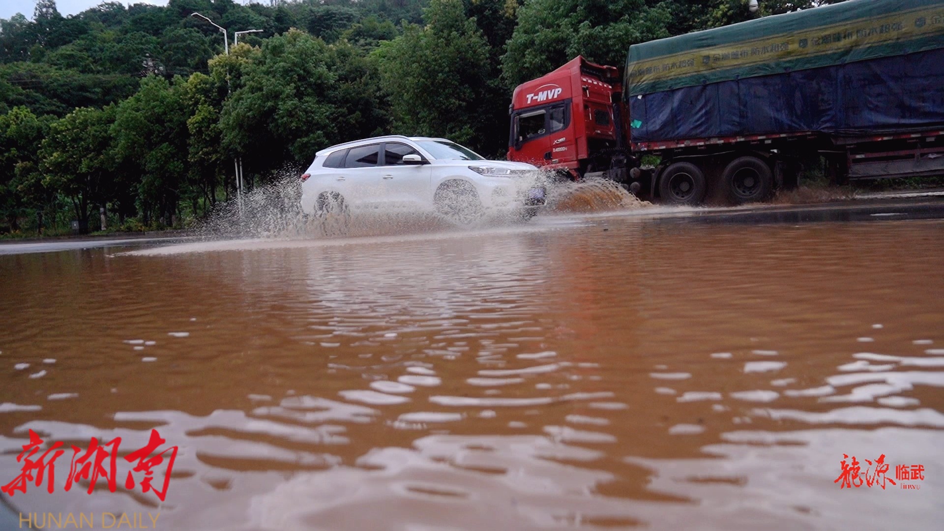 6月11日下午,受强降雨影响,在临武大道临武三中路段出现严重内涝。部分路段积水深度接近车辆驾驶舱,严重阻碍车辆通行并威胁行人安全。