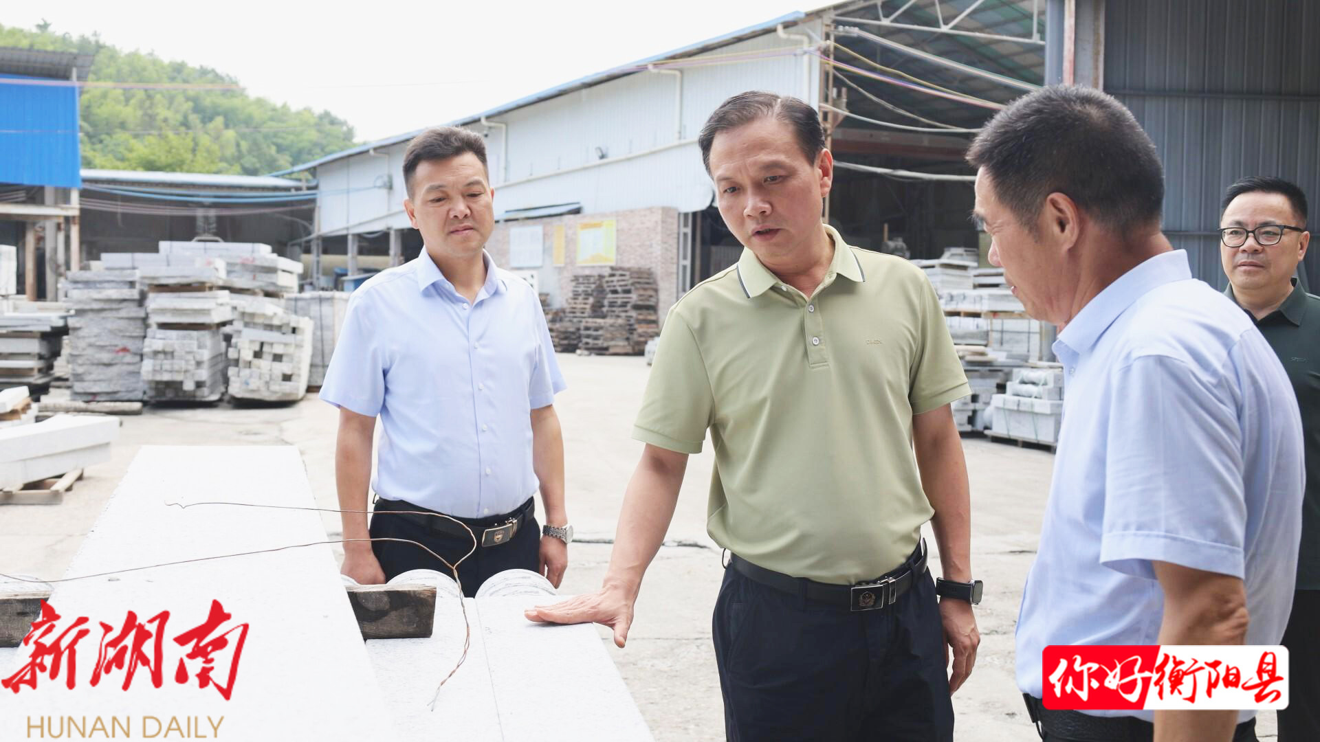在井头镇,杨峰先后来到衡阳县科达矿业有限公司静云锰矿和井头镇紫珅石材,察看石材加工流程,了解矿区资源储量、开采工艺、安全防护措施以及生态修复等情况。当得知静云锰矿存在生产供电不足和运输道路狭窄等问题时,杨峰要求,相关部门要积极作为,主动帮助企业解决实际困难,为企业发展创造良好的环境。他强调,石材企业要向高端化、精细化方向发展,规划建设石材产业园区,吸引更多企业集聚,完善产业链条,提升产品附加值。各企业要坚决守牢生态保护和安全生产两条底线,推动产业绿色、高效、可持续发展。