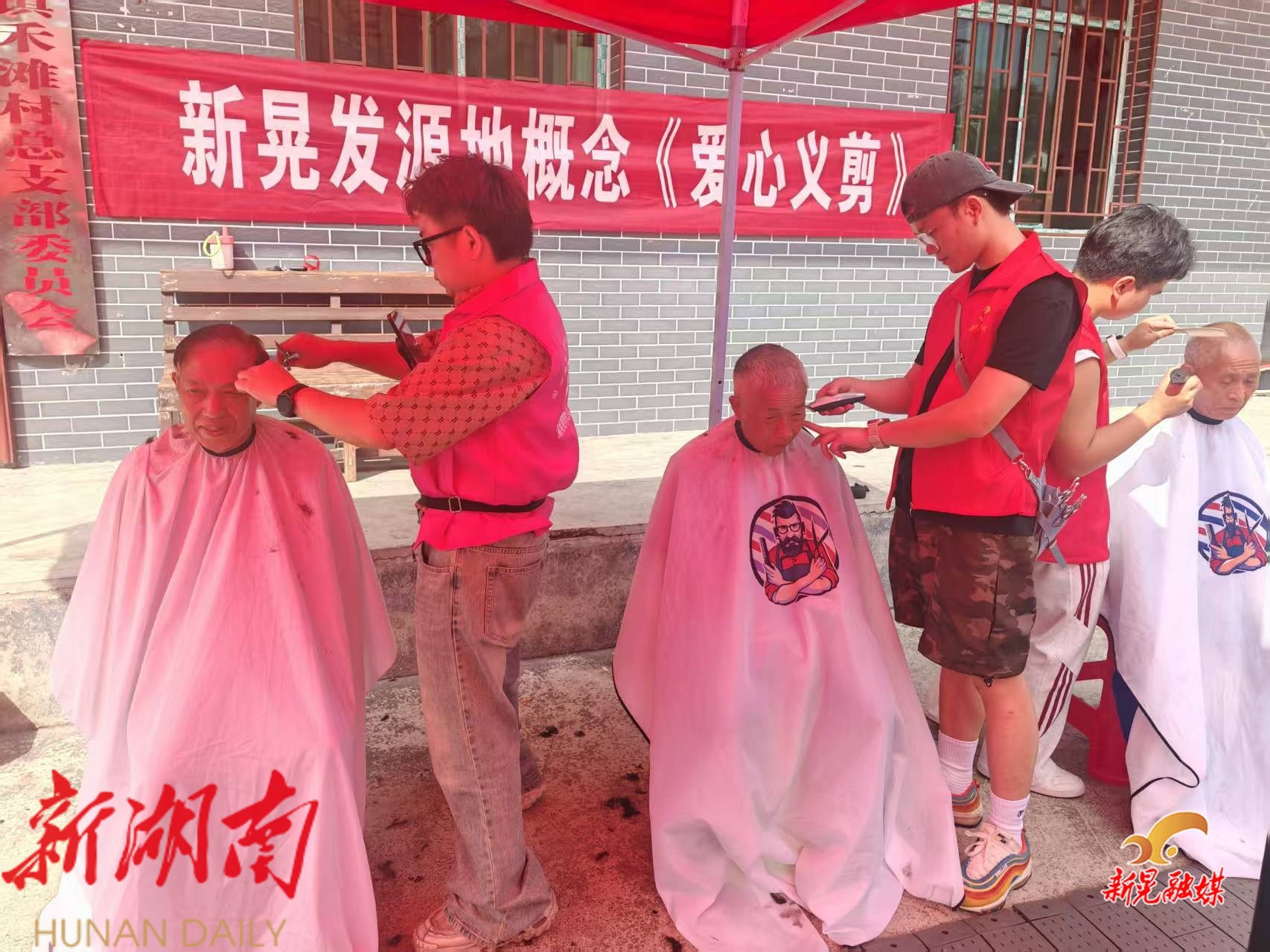 活动现场还设置了政策宣传区,工作人员通过展板、横幅、宣传手册、咨询台现场讲解等方式围绕乡村振兴、社科普及、科技科普等主题展开宣传,同时开展便民服务,把最惠民的政策、最有用的知识、最热情的服务送到群众身边。医疗工作人员耐心地为村民测量血压、血糖,并提供一对一的医疗咨询。爱心义剪志愿者们为村民修剪头发,并与老人、孩童亲切交谈。科协工作人员将精心准备的科普手册送入村民手中,并向村民讲解最新的农技知识。现场,还有志愿者向群众展示了部分仿真毒品模型样品,科普毒品的危害,告诫大家要警惕新型毒品。