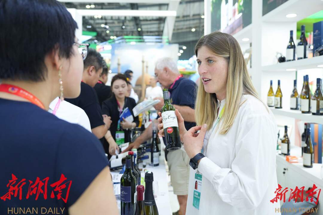 6月13日,南非厄尼·埃尔斯酒庄的酿酒师香农·莫斯正为宾客讲解葡萄酒的酿造工艺与风味特点。湖南日报全媒体记者 辜鹏博 摄