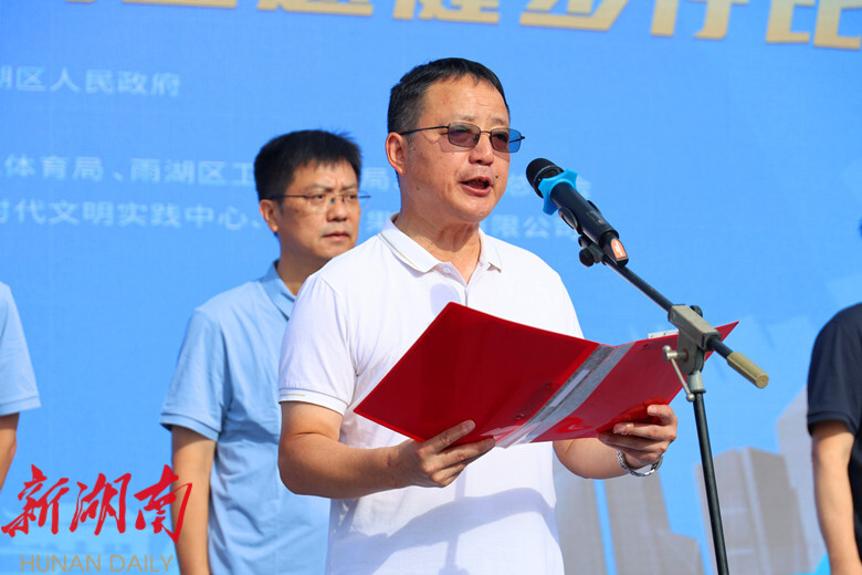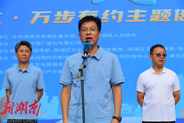 雨湖融媒6月14日讯 (记者 李南曦 陈娟 朱文捷 赵栋 姜俊)为深入贯彻党的二十届三中全会精神,积极响应国家“体重管理年”三年行动的号召,增强全民身体素质、提高全民健康水平,促进职工文体活动多样化发展,6月14日,千余名雨湖干部群众齐聚窑湾,参加“我爱湘潭我的家”2025年雨湖区“天之蓝”杯“徒步湘江·万步有约”主题健步行活动,区委书记陈小平宣布活动启动,区委副书记、区长柳军辉为活动致辞。